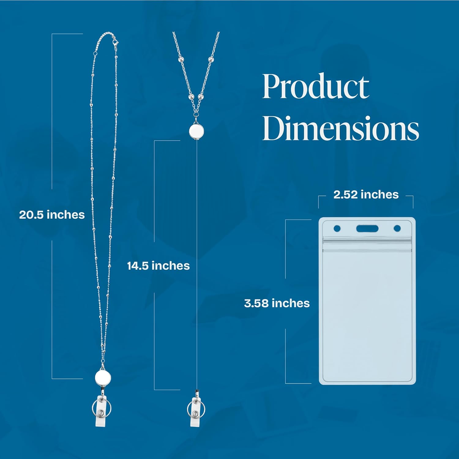 - Fashion Badge Lanyard set: Premium stainless steel beaded lanyard necklace with retractable badge reel pendant makes this retractable badge holder style and elegant. Comes with clear ID card holder so you don't need to buy it elsewhere.