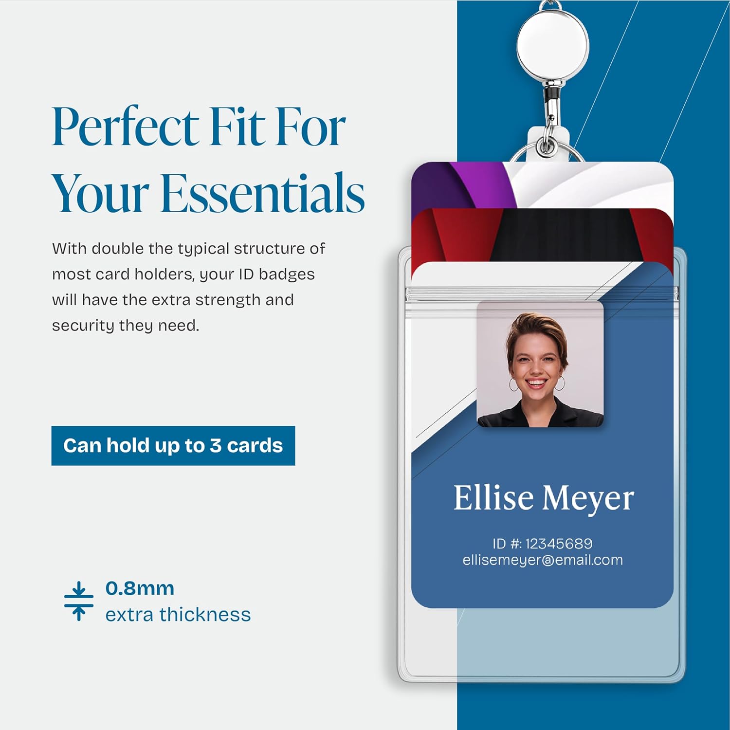 - Thick and Large Water Resistant Work ID Card Holder: 3.58"x2.52"(90x64mm) Insert size can easily hold 3 standard credit cards or similar thick items such as cruise cards, access cards, cash, keys, business cards etc. The clear top resealable zipper keeps out dirt and moisture to help protect your employee identification safe and secure.