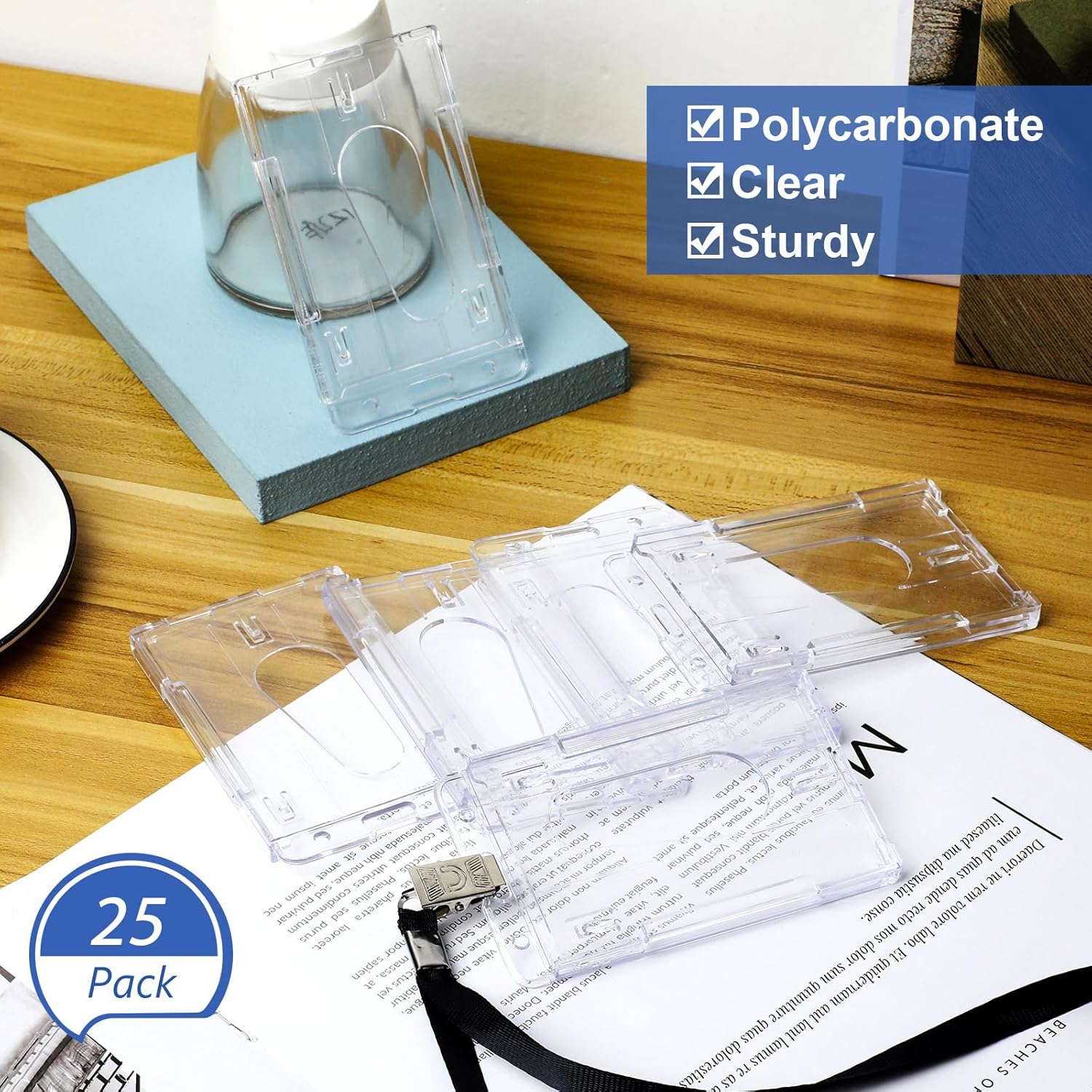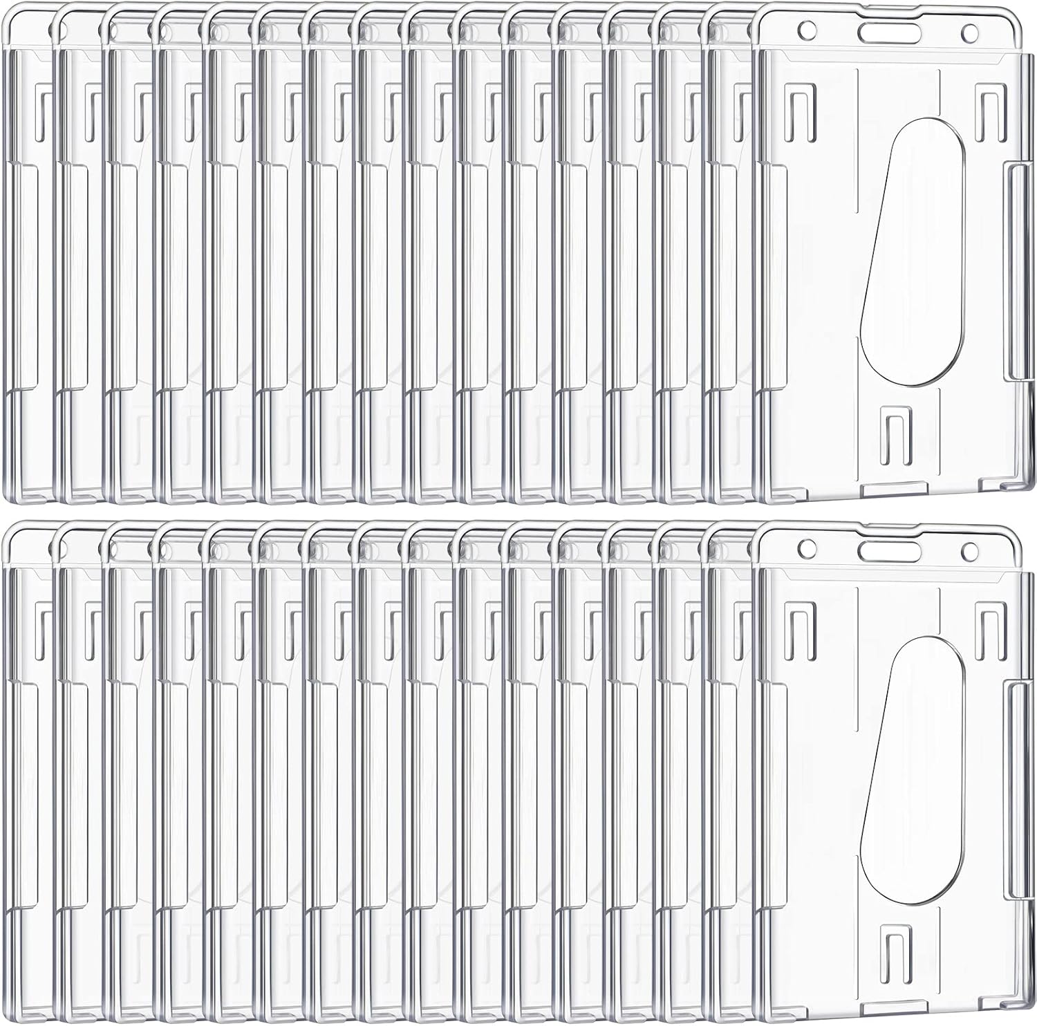 25 Pieces Vertical 2 ID Badge Holder Heavy Duty Plastic ID Card Holder Transparent Protector Clear Badge Protector Cover Sleeve Protective Cover with Thumb Slot for Credit Card