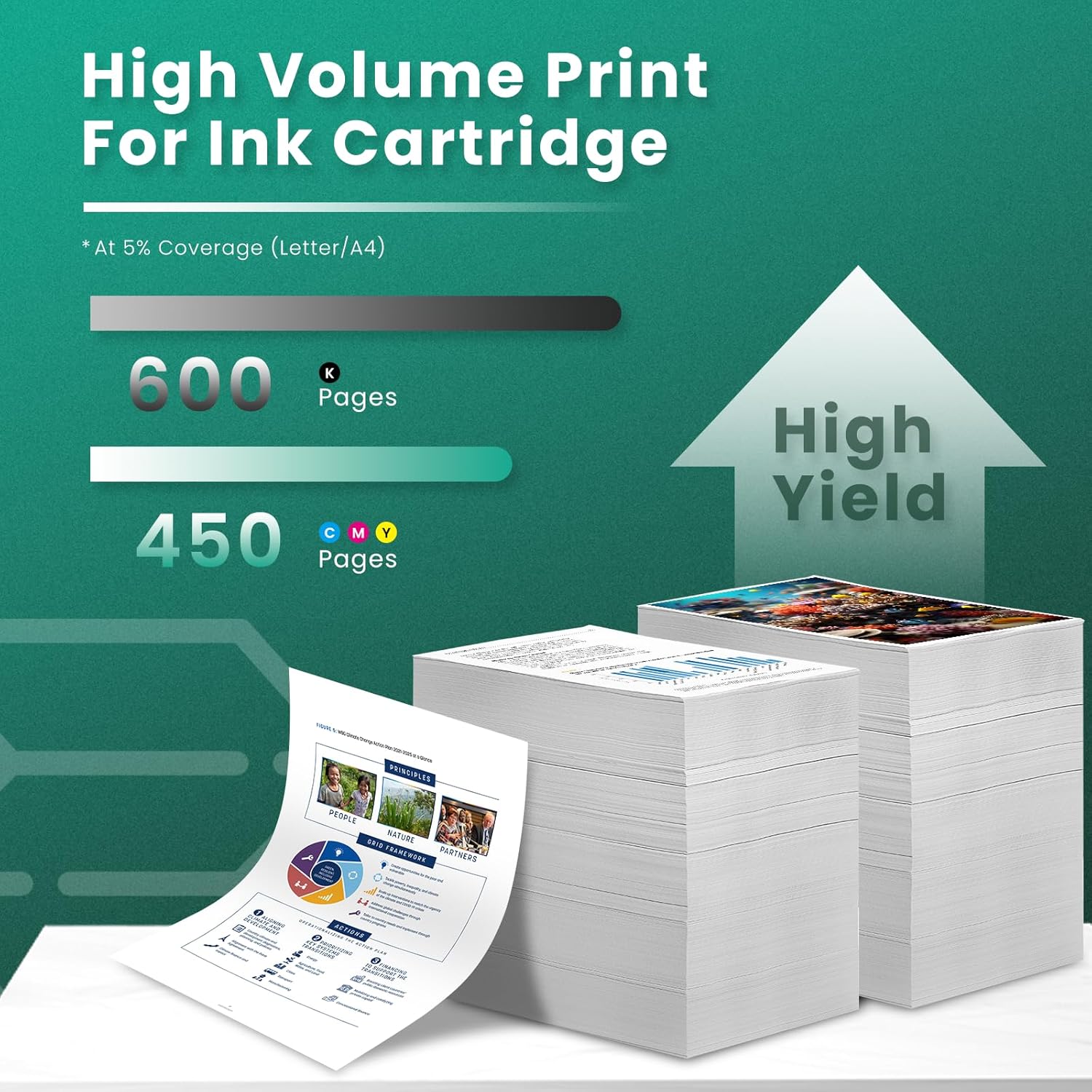- High Page Yield: Up to 600 pages per GREENBOX for 62xl for 62xl black ink cartridge high yield & 450 pages per GREENBOX for 62xl color ink cartridge at 5% coverage (A4 paper)