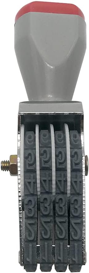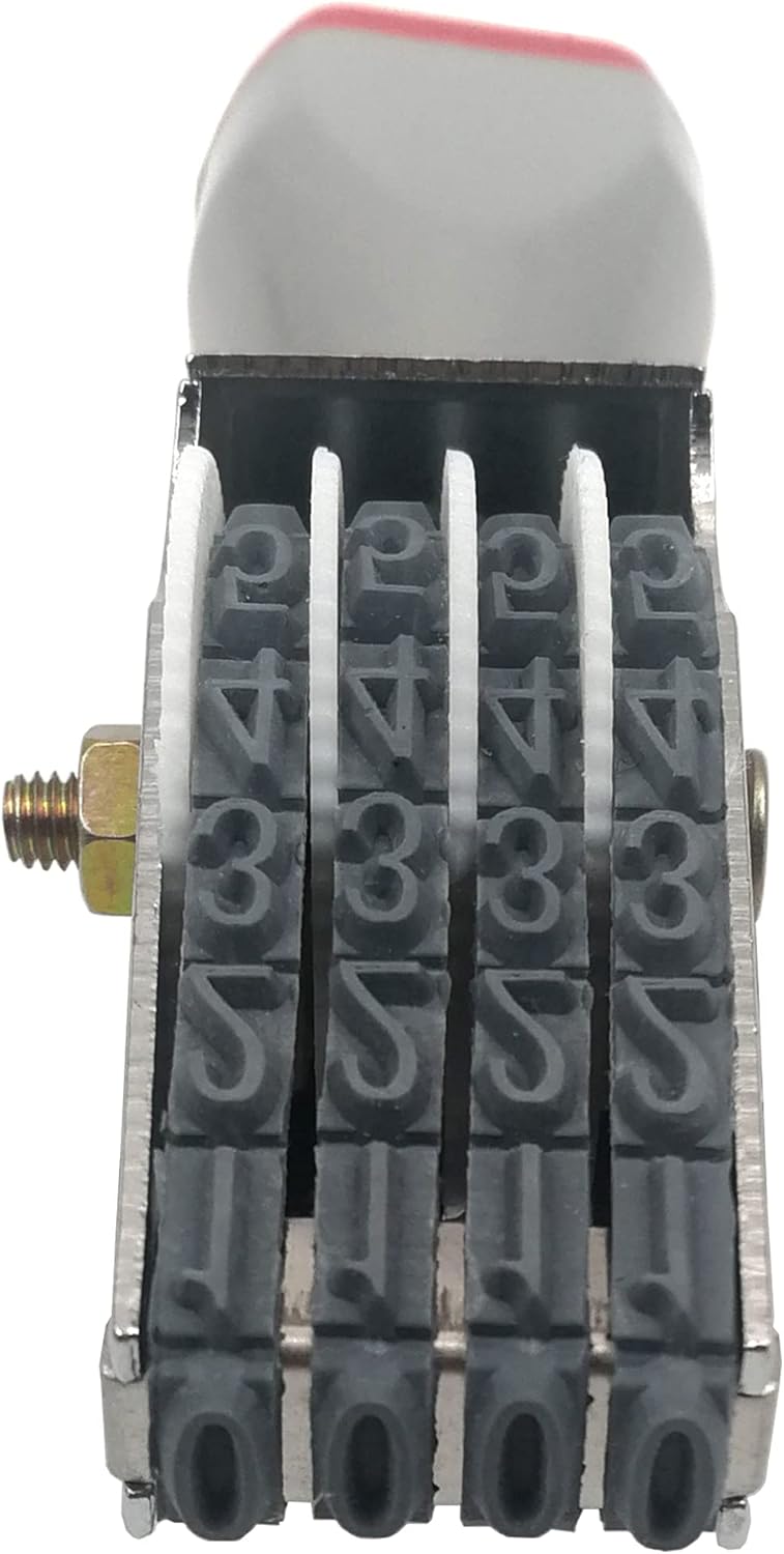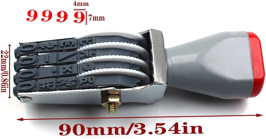 - Traditional 4 digit rubber stamps, Material : Metal, Rubber, Plastic; Size:Length :90 mm/3.54 in, Width:20 mm/0.78 in,High:25 mm/0.98 in, Character : Width:5 mm /0.19 in,Height:7 mm/0.27 in,Color : Gray black, Weight: 40 g, Package Content : 1 X Numbering Stamp (Without ink,Requires a separate ink pad).