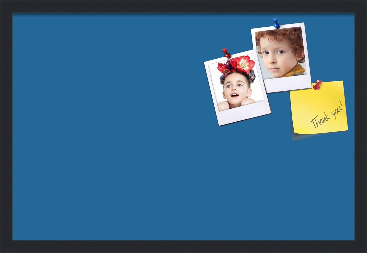 PinPix 27x18 Inch Cork Bulletin Board. This Decorative Framed Pin Board Comes with Navy Pastel Design and a Satin Black Frame. Ideal for Home Office Decor or Message Board (PinPix-1811)