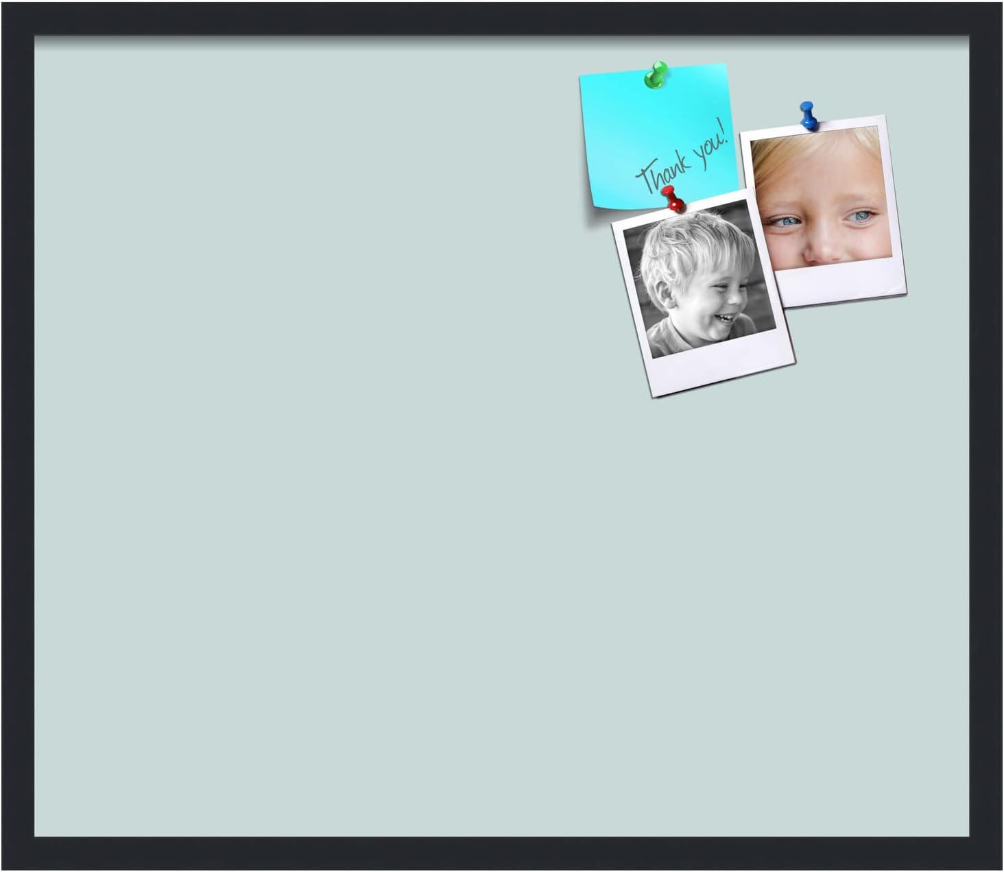 PinPix 28x24 Inch Cork Bulletin Board. This Decorative Framed Pin Board Comes with Soft Blue Design and a Satin Black Frame. Ideal for Home Office Decor or Message Board (PinPix-1814)
