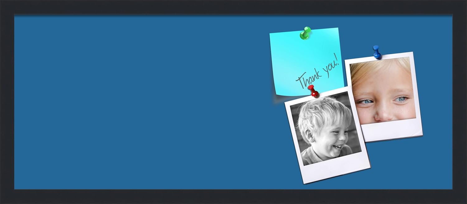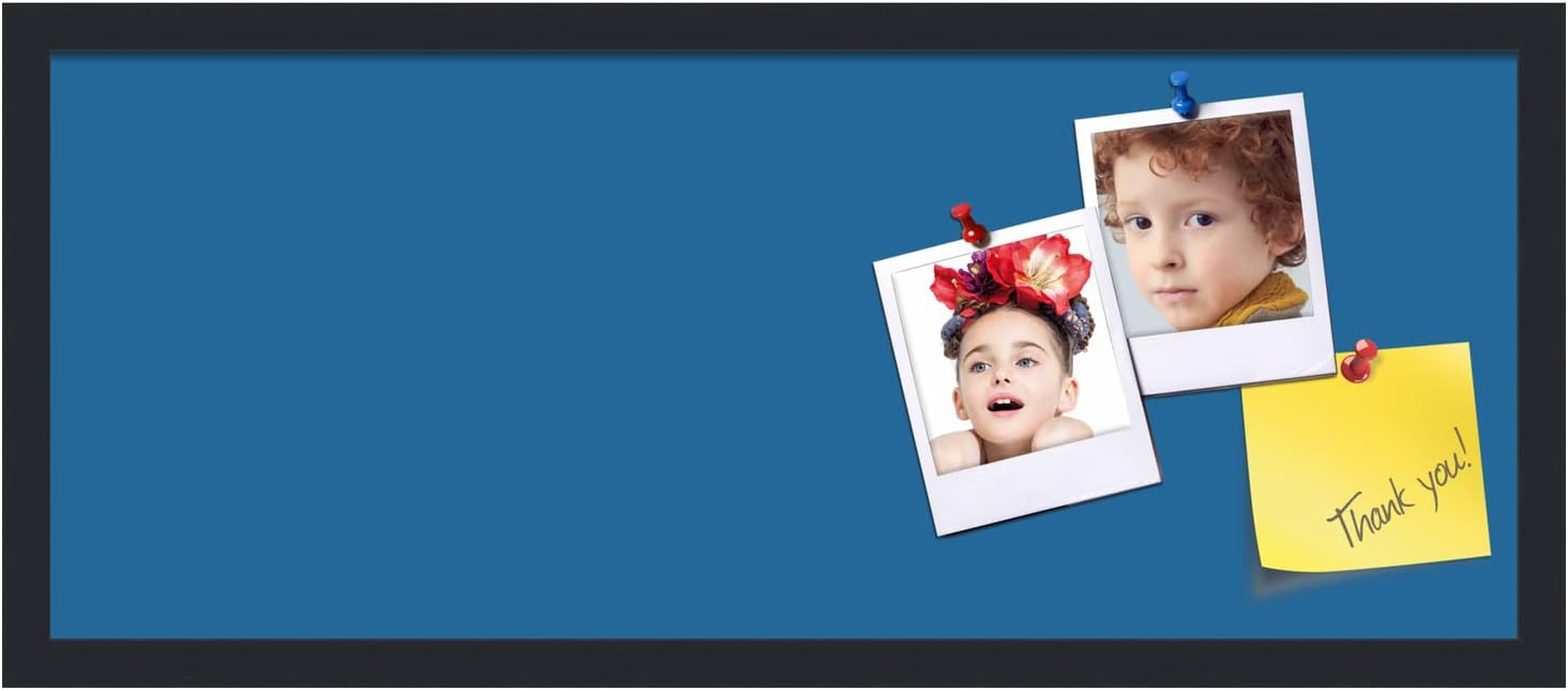 PinPix 30x12 Inch Cork Bulletin Board. This Decorative Framed Pin Board Comes with Navy Pastel Design and a Satin Black Frame. Ideal for Home Office Decor or Message Board (PinPix-1811)