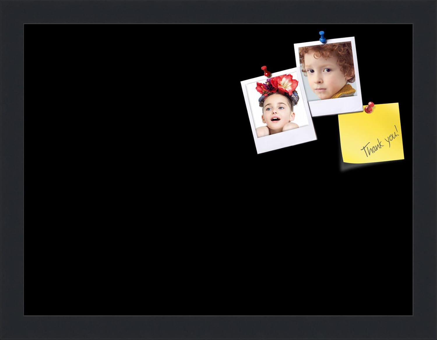 PinPix 16x12 Inch Cork Bulletin Board. This Decorative Framed Pin Board Comes with Solid Black Design and a Satin Black Frame. Ideal for Home Office Decor or Message Board (PinPix-622)