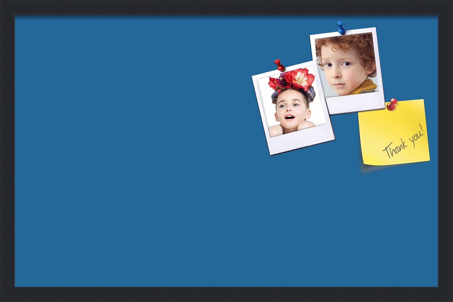 PinPix 28x18 Inch Cork Bulletin Board. This Decorative Framed Pin Board Comes with Navy Pastel Design and a Satin Black Frame. Ideal for Home Office Decor or Message Board (PinPix-1811)