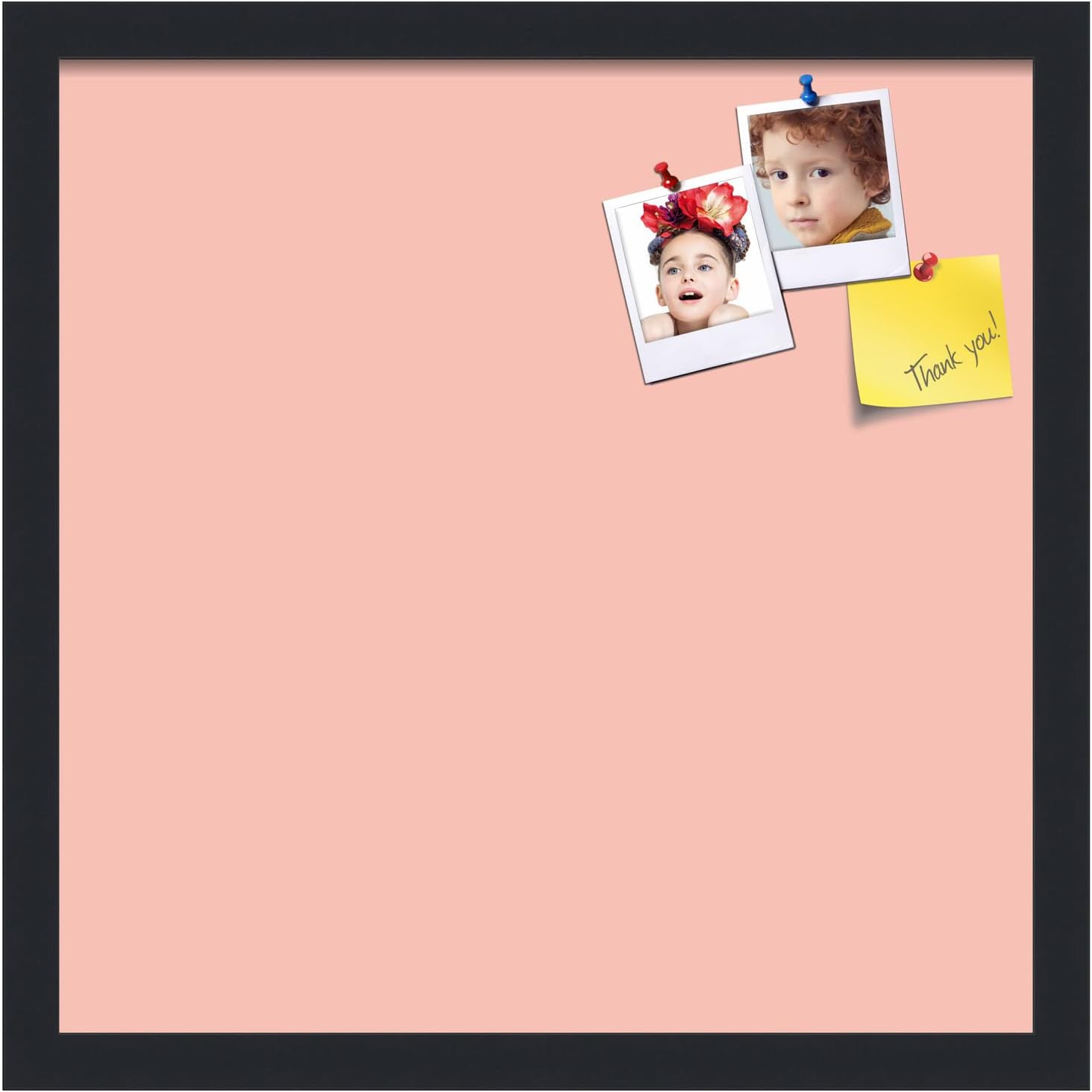 PinPix 17x17 Inch Cork Bulletin Board. This Decorative Framed Pin Board Comes with Pink Pastel Design and a Satin Black Frame. Ideal for Home Office Decor or Message Board (PinPix-1813)