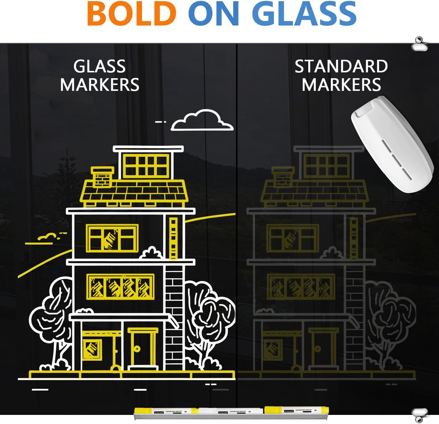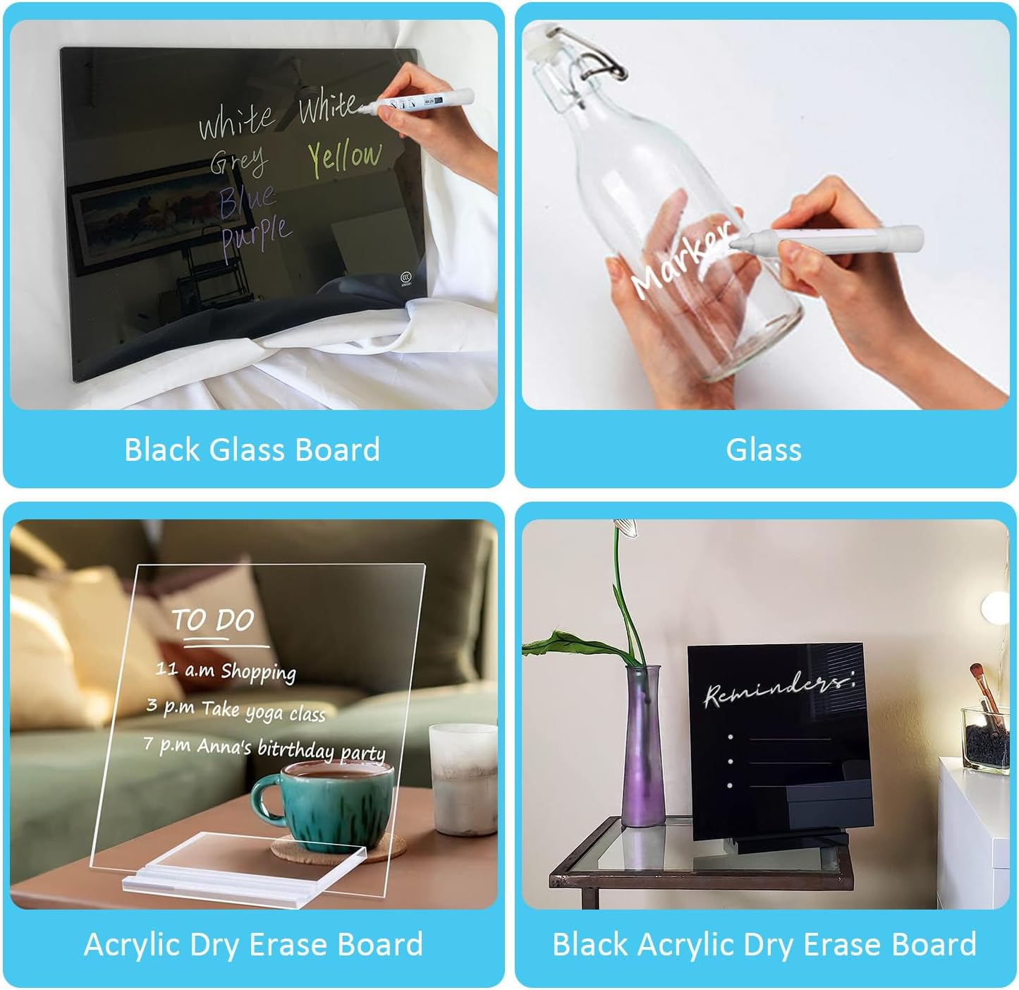 - 【BOLD COLOR】– Premium bright white glass dry-erase markers are optimized for use on non-porous surfaces, such as black glass boards/acrylic board. Delivers strong bold color every time, to ensure that your message is distinct and legible. Note: Doesn't include replacement marker tip.