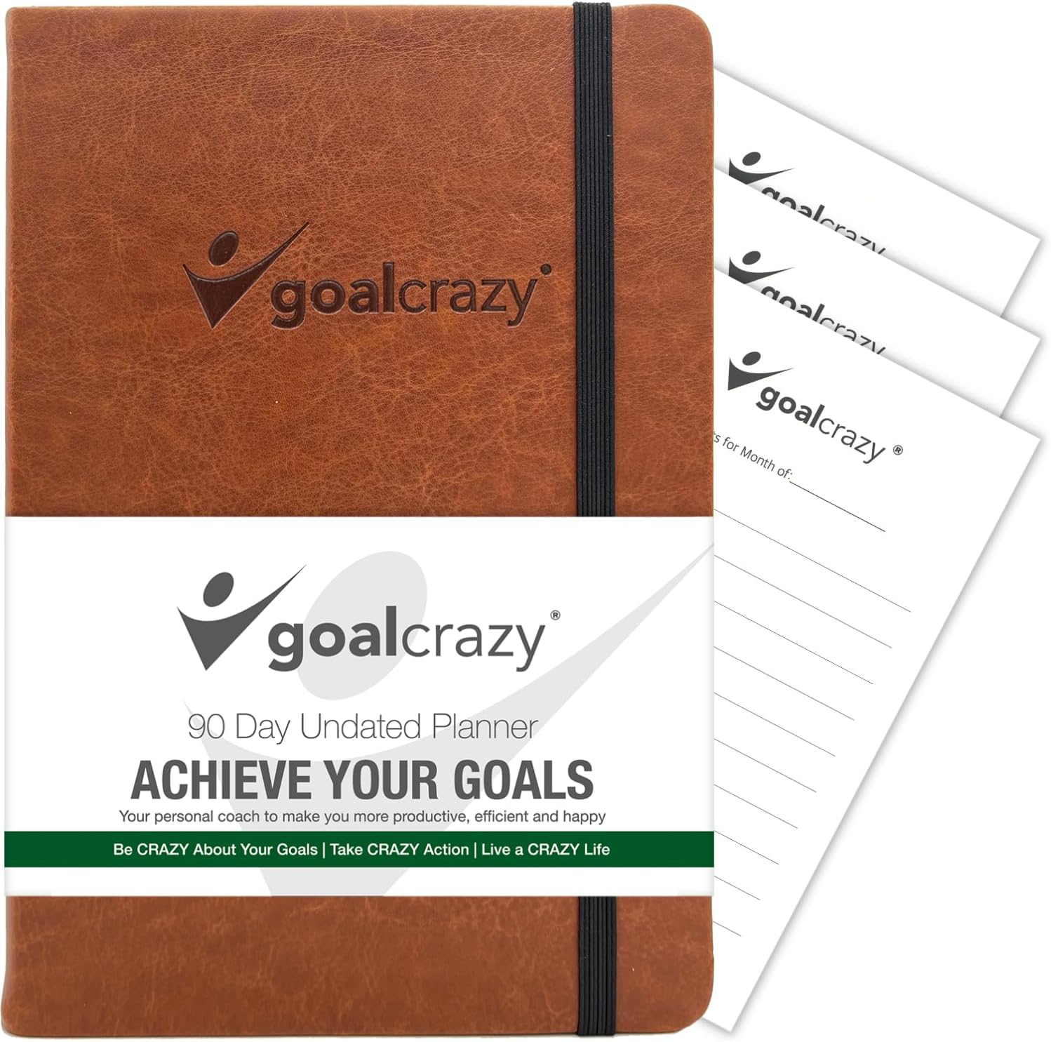 Undated Planner – 90 Day Guided Journal & Productivity Organizer, A5 Daily & Weekly Planner 2025 2026 with Goal Setting, Habit Tracker, To Do List, Academic & Work Calendar, Leather Hardcover - Brown