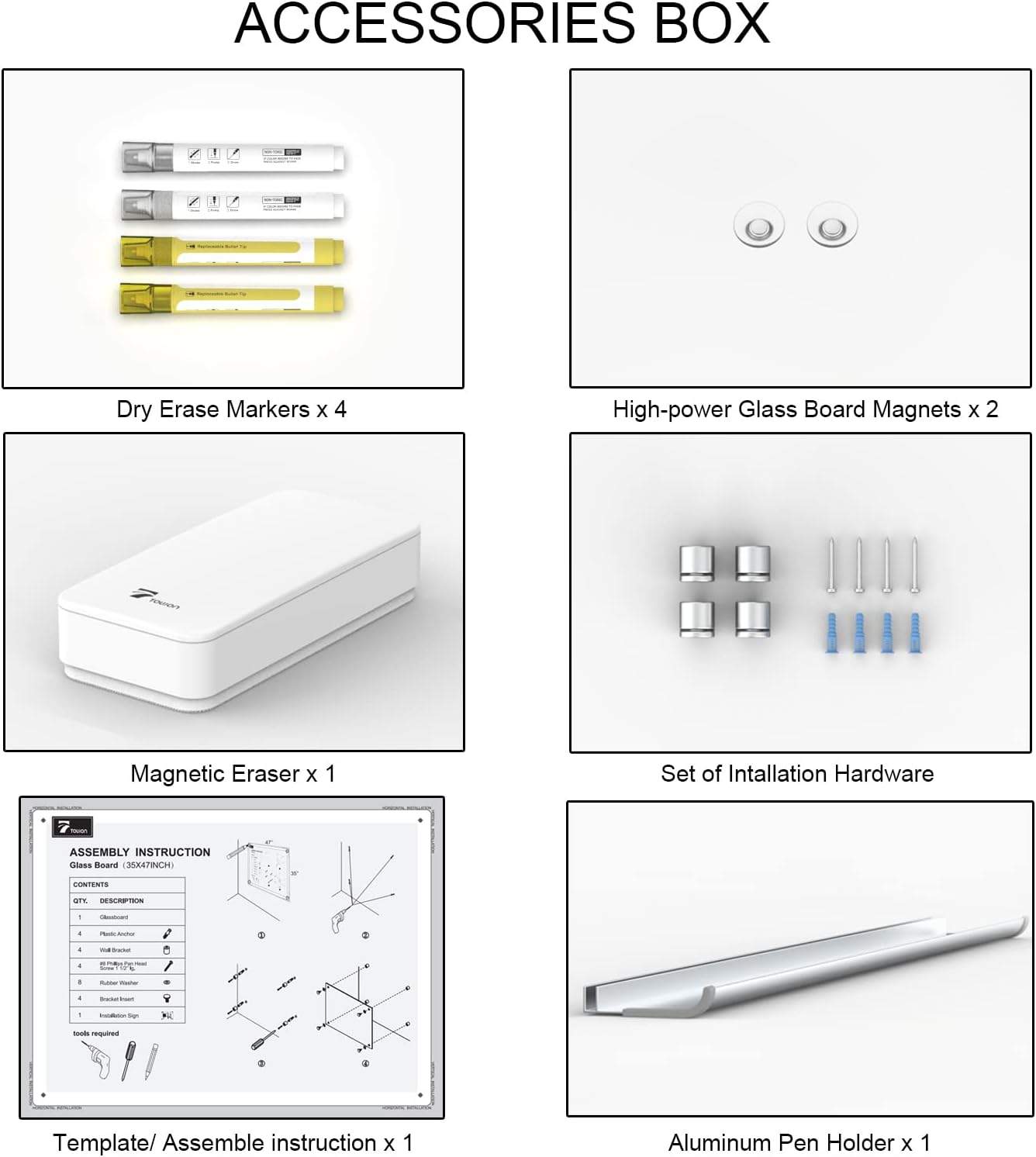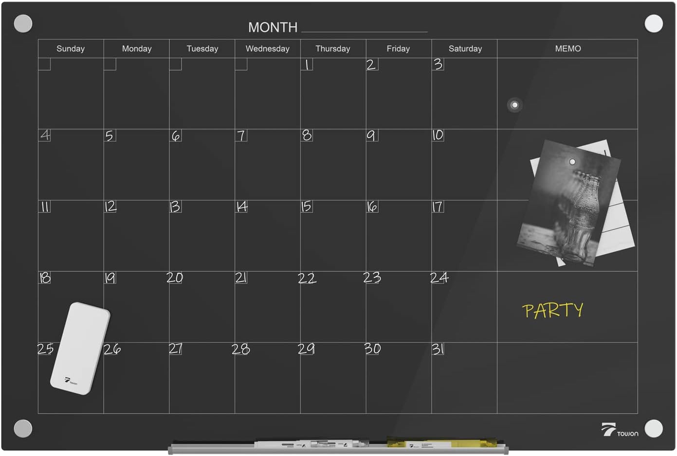 TOWON 47 x 35 Inch Glass Dry Erase Board Reminder, Magnetic Whiteboard Calendar Yearly, Monthly Planner Set for Office, Kitchen and School, Black