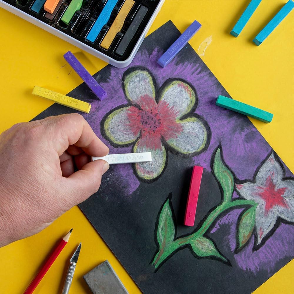 Mont Marte Soft Pastels in Tin Box Signature 48pc, 48 Assorted Colors, Vibrant Pastel Sticks, Great Blending, Comes in Storage Case, Ideal for Art, Craft, Coloring and Sketching
