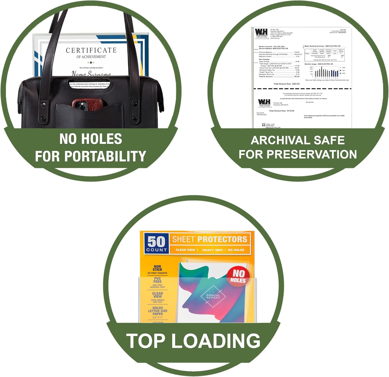 - No Holes. These clear plastic sleeves have the durability of traditional heavyweight sheet protectors, but without the three hole punch binding strip, making them perfect for protecting papers that are not in a binder. Take your documents safely with you