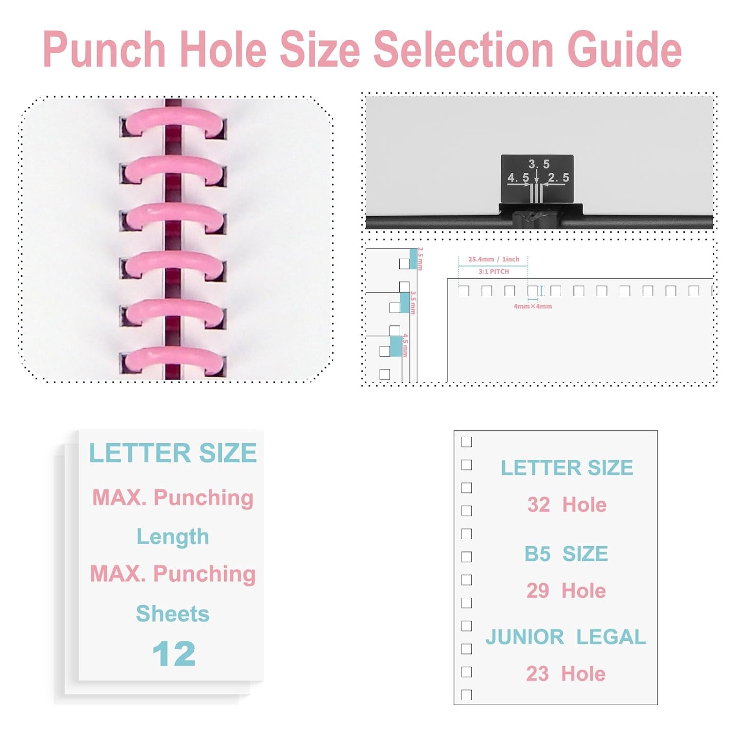 - PUNCHES 12 SHEETS AT A TIME – Quick & Efficient Binding, up to 12 sheets (80gsm/20lb) at once, helping users quickly prepare documents for binding, reducing effort and increasing productivity.