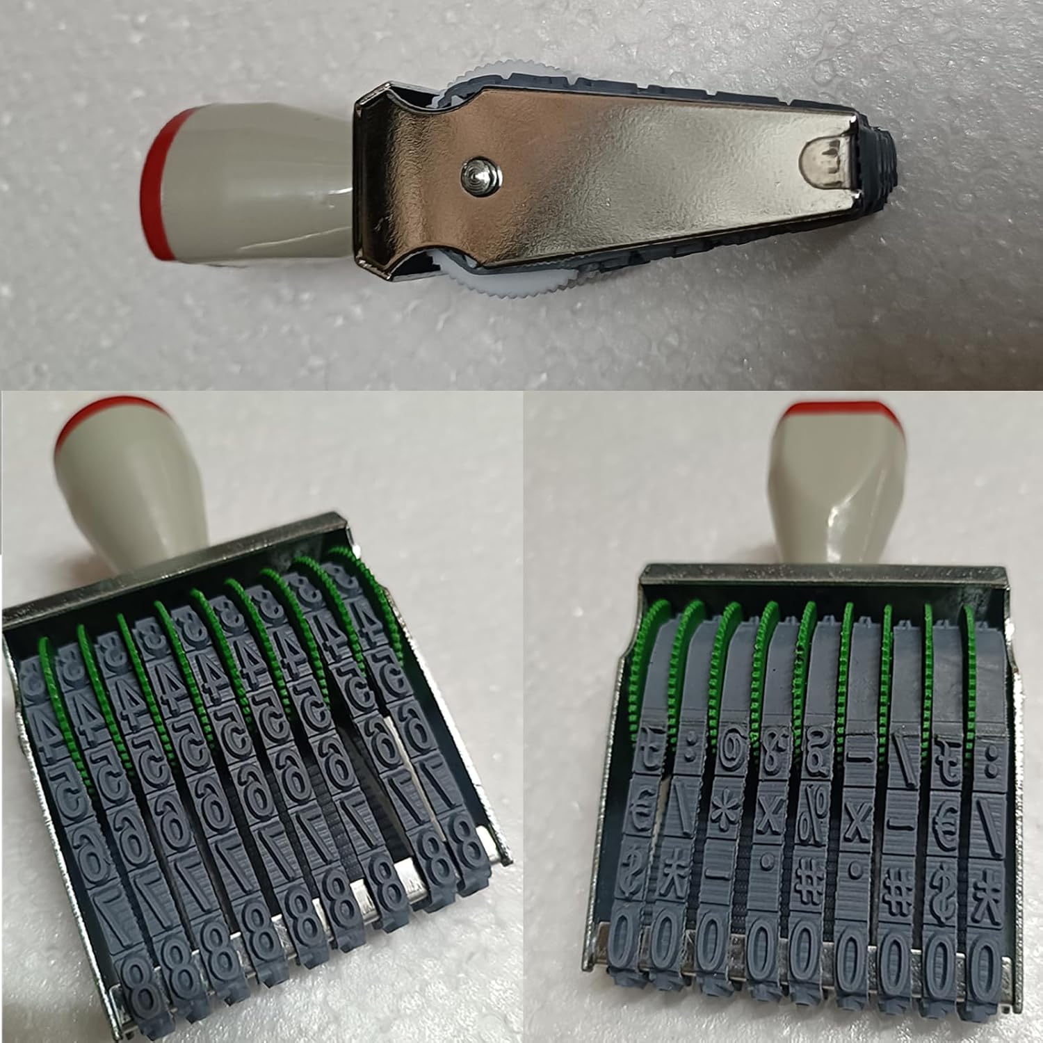 - Manual rolling number stamp:9 Adjustable Wheels, Set numbers (0-9) and symbols #, X, %, etc.. (varies by production batch) on each belt for custom imprints.