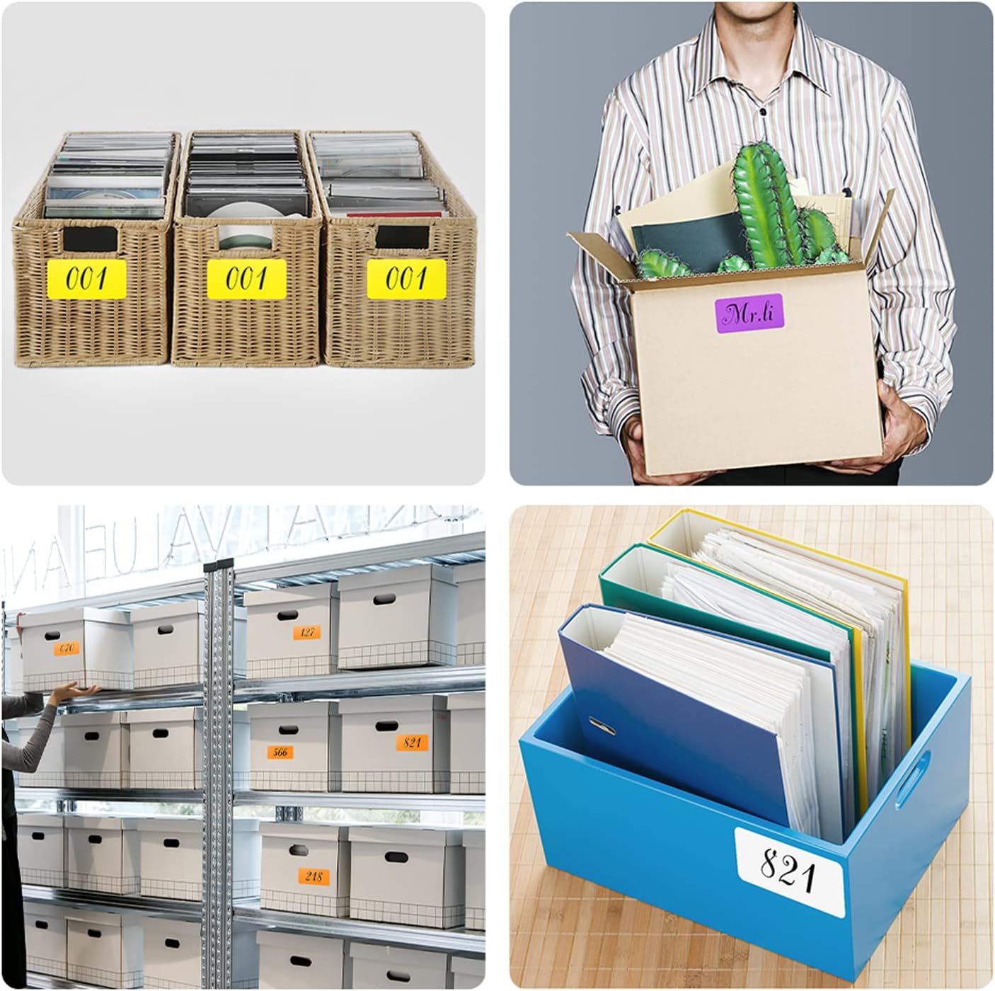 - Wide Applications: The adhesion of this labels sticker is strong enough to stick on any flat surface, such as floor, boxes, wall, papers, documents, jars, notebooks, bins, shelves, and more.