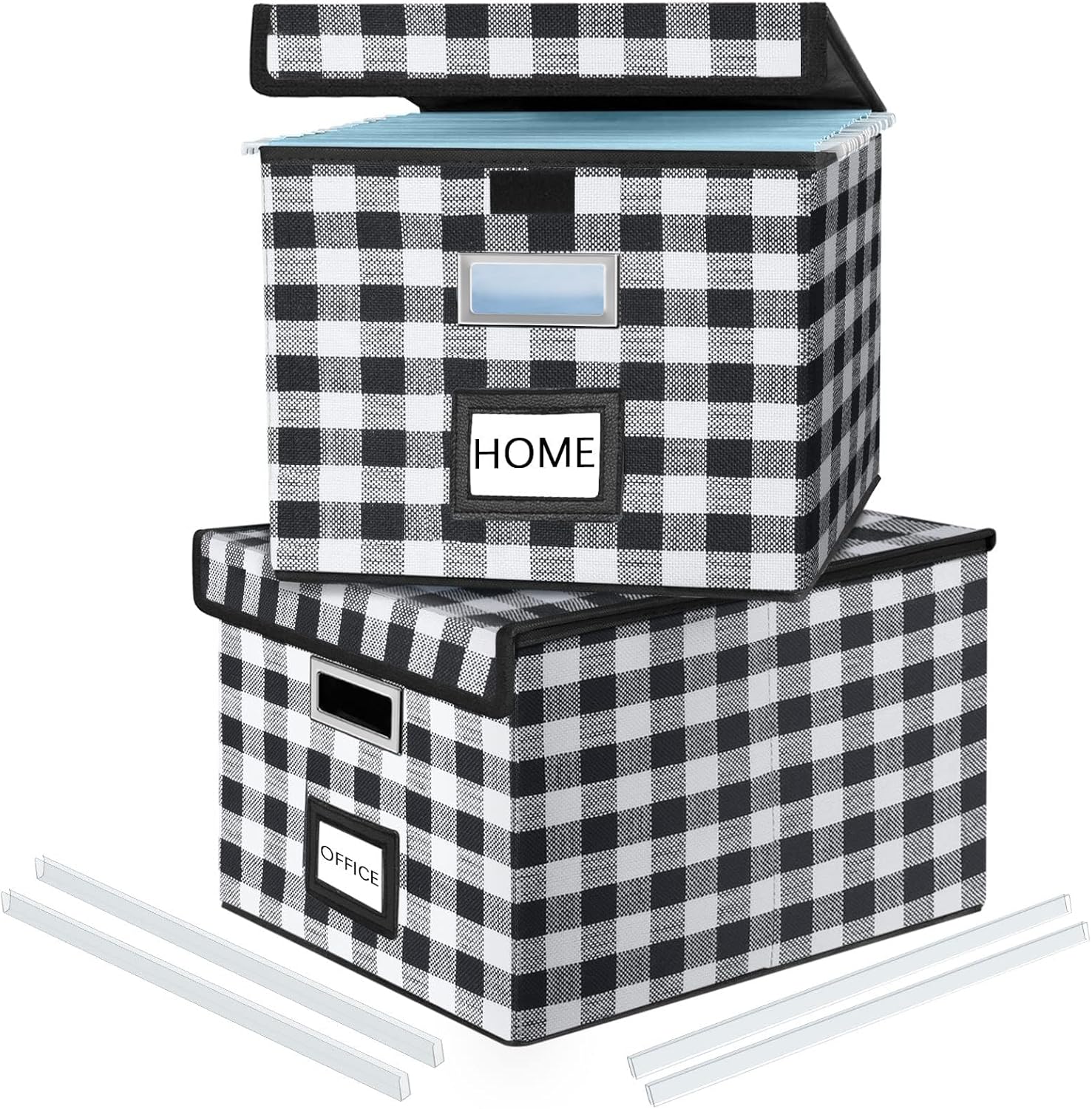 Huolewa Decorative Collapsible File Storage Organizer Boxes with Lids, Hanging Filing & Storage Boxes for Office/Decor/Home, Filing System for File and Folders Storag - (Black & White Lattice)