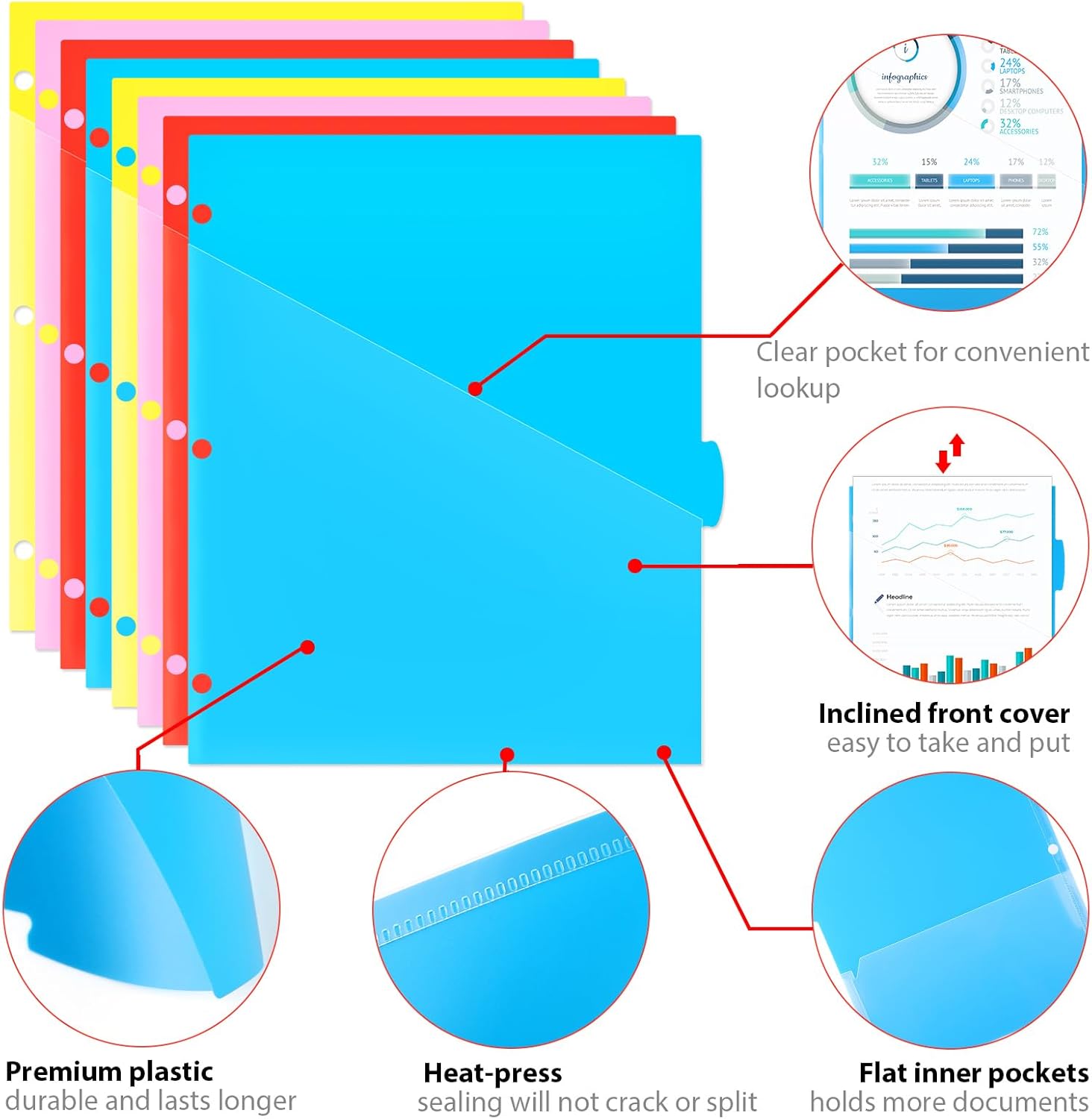 - Double Pockets: Each tabs divider features two clear pockets, great to collect your loose paper and text. Insertable pockets are also easy for put in and take out