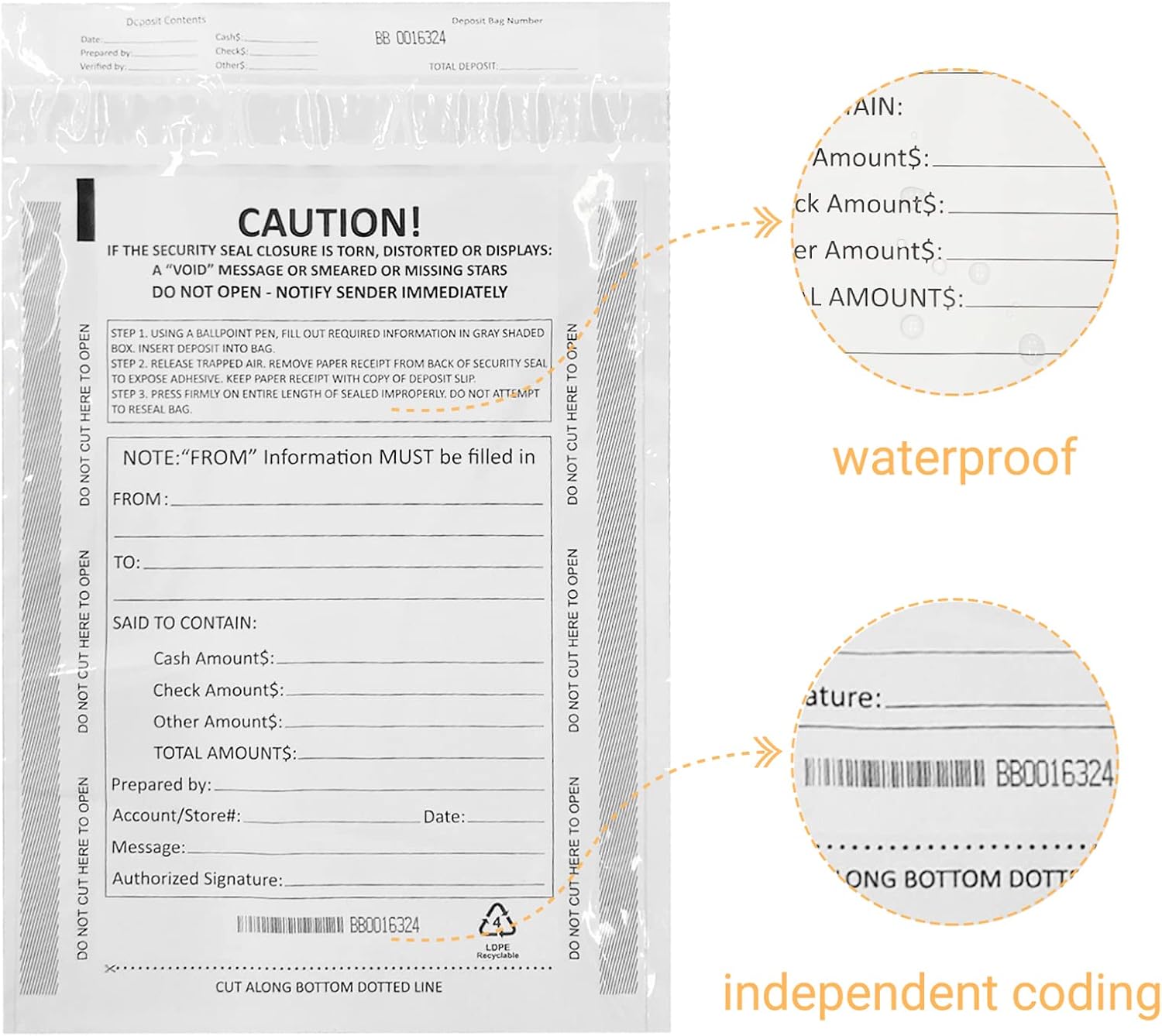 - These deposit bags can not open it without destroyed the bag after closing the bag. You can safely use.