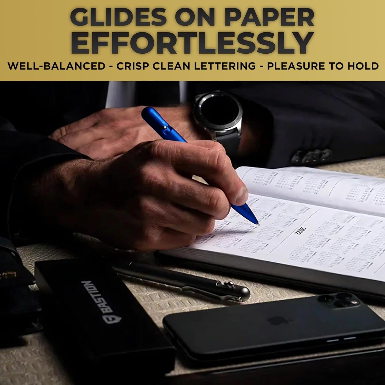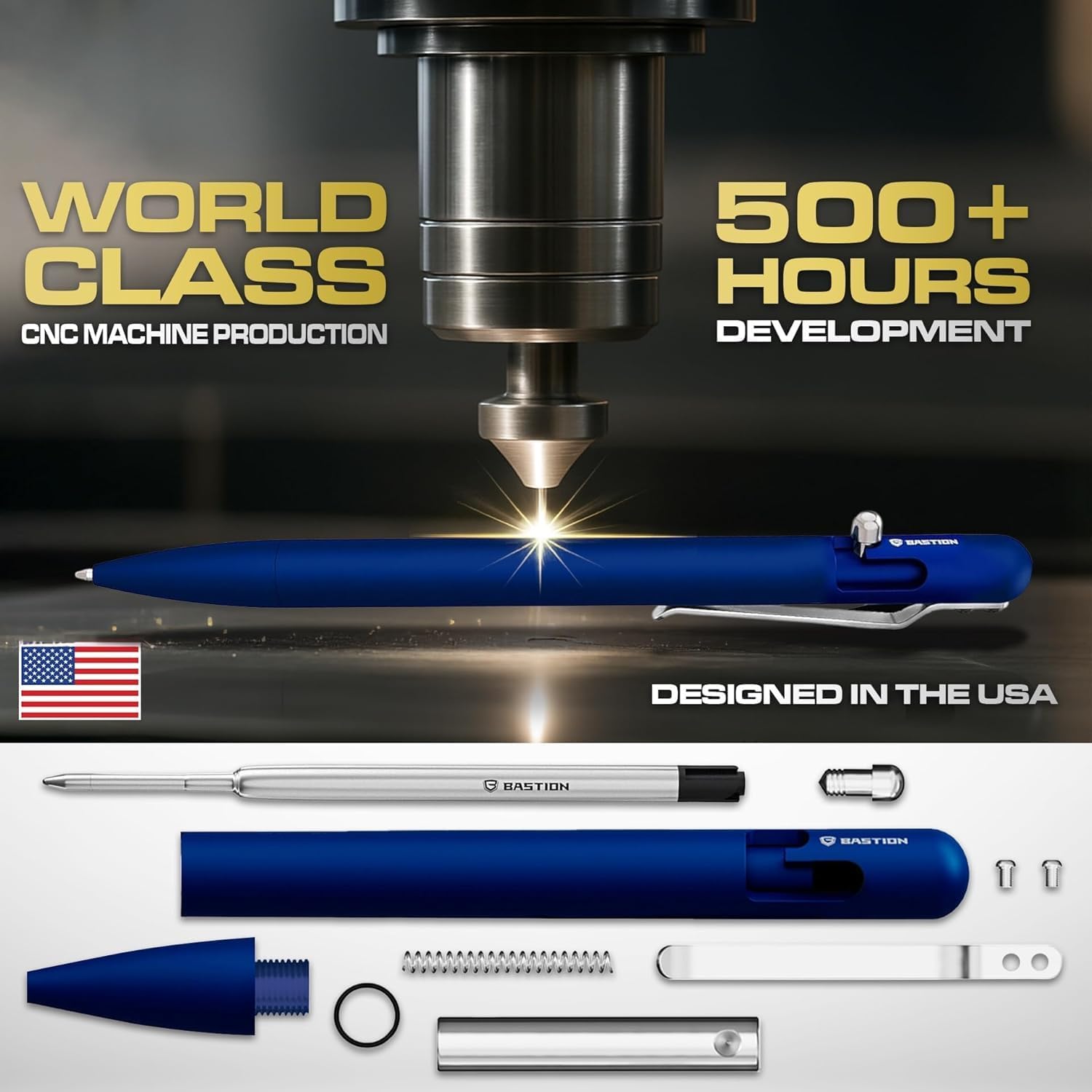 - Bolt Action Mechanism: Our J-shaped bolt action mechanism provides a secure lock with non-wearing parts and a simple one-push operation. BASTION pens combine functionality and elegance with its high-caliber machined CNC precision design. Our pens are a prestige symbol because of their sturdy construction, simple retractable operation, and beautiful appearance.
