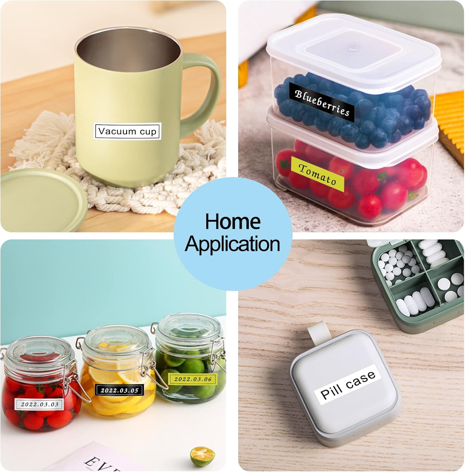 - For Indoor and Outdoor: Such as office supplies, lab appliances, wardrobe, kitchenware, etc. Compatible with Brother 12mm label tape gold/black/white has split-back design, is easy to peel and use. Print clearly and no sticky residue when Ptouch tape 12mm is removed.