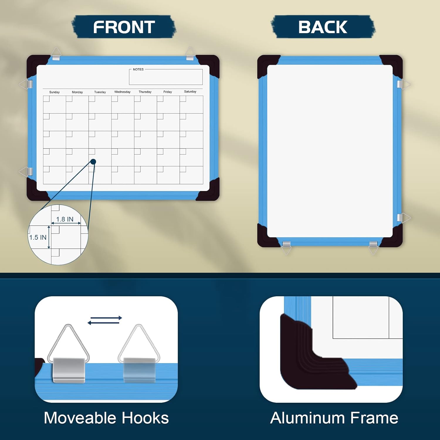 Dry Erase Calendar Whiteboard, Magnetic White Board Calendar Dry Erase Board, 16" X 12" Monthly Calendar Board Small Wall Hanging Planner Memo Whiteboard for Home, School, Office, Kitchen (Blue)