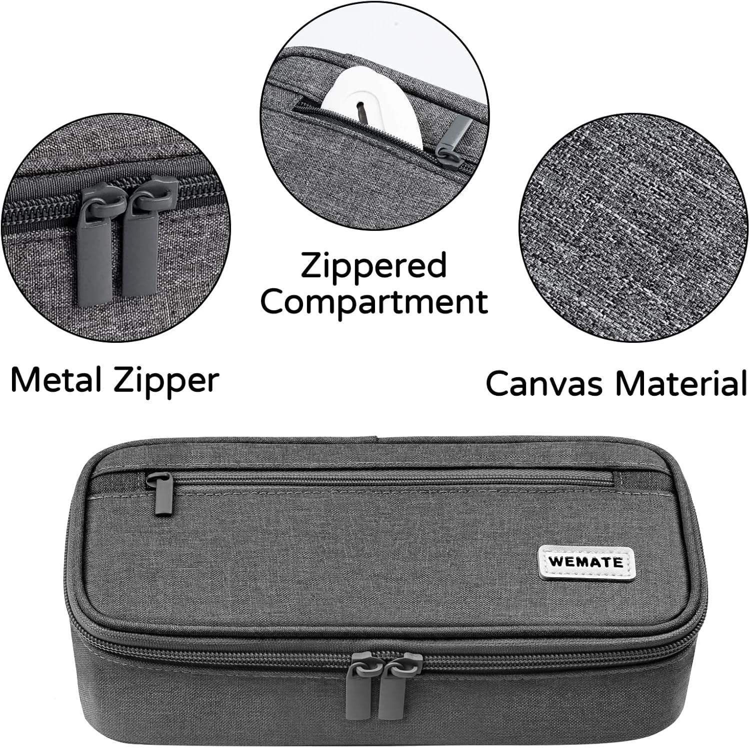 - Premium Canvas: WEMATE large-capacity pencil holder is made of 100% high-quality canvas, is strong and durable. Fine workmanship and provide you with dust-proof, not easy to damage pencil pouch.well-crafted and subjected to strict quality inspection, that not only looks great but will last for years to come