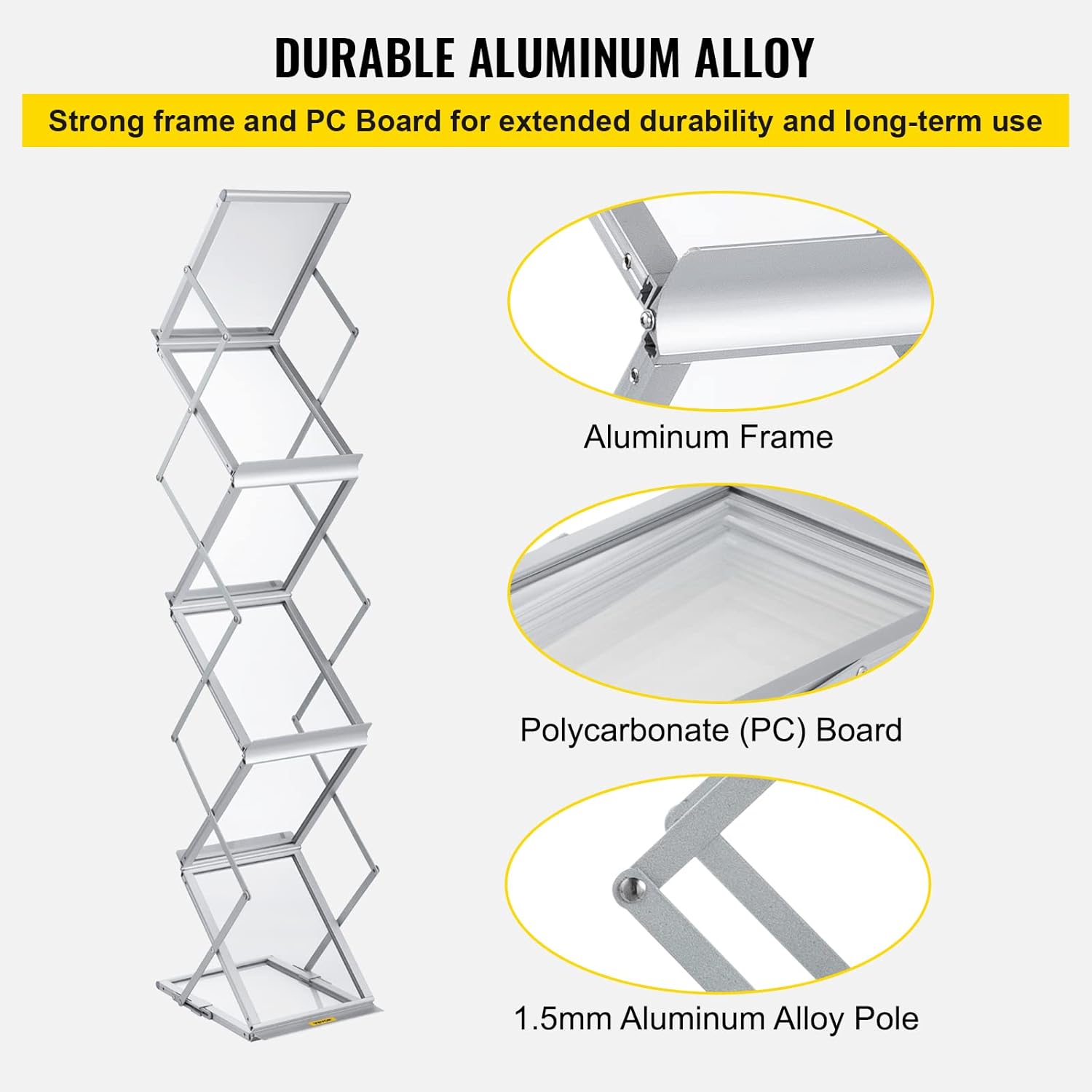 VEVOR Literature Rack, 6 Pockets, Pop up Aluminum Magazine Rack, Lightweight Catalog Holder Stand w/Carrying Bag for Living Room, Hotel, Trade Show, Exhibition, Office