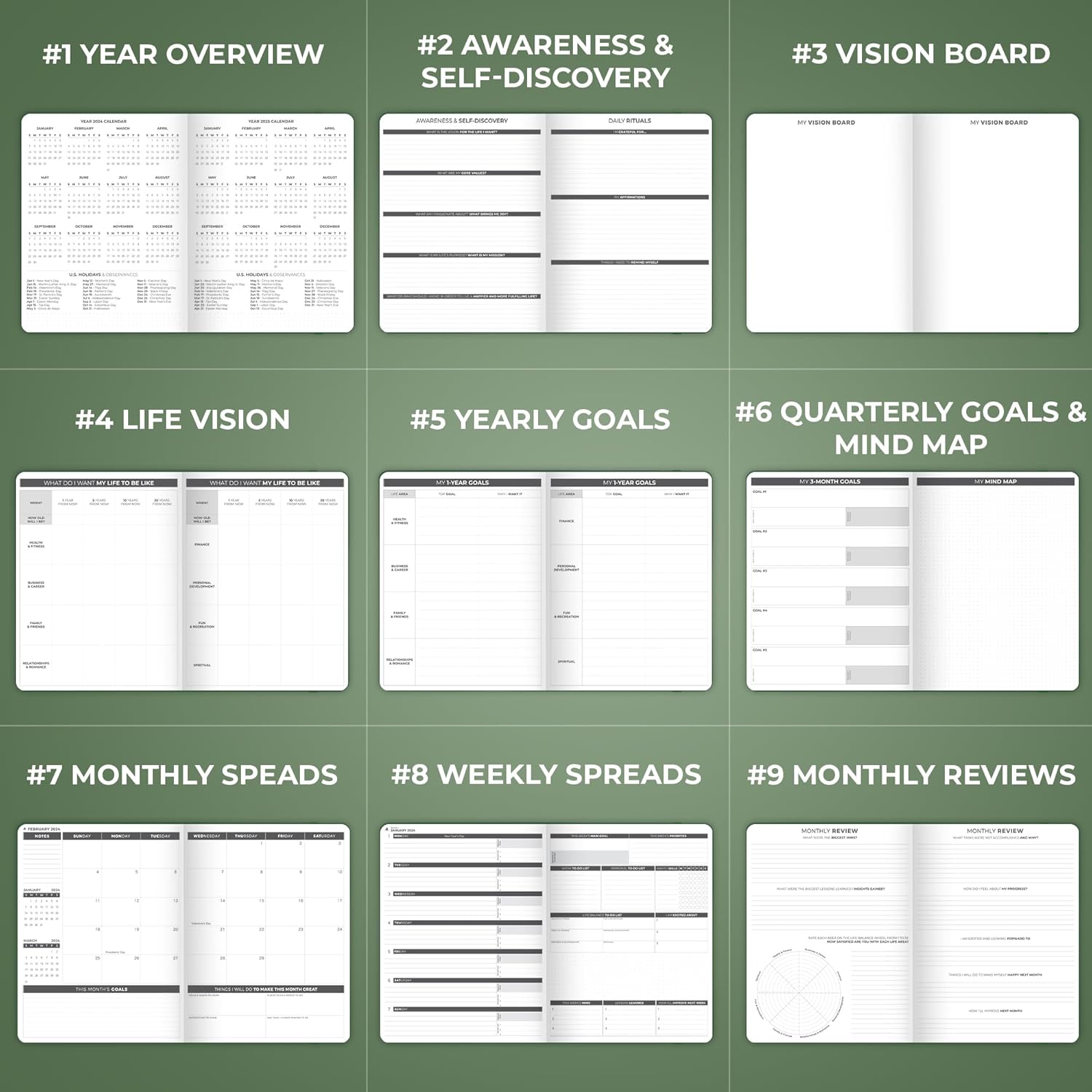 - CREATE A VISION FOR YOUR FUTURE, SET GOALS & START PLANNING – This goal-setting planner 2025 will help you create a vision for your life, define your global goals, and incorporate them into your agenda.