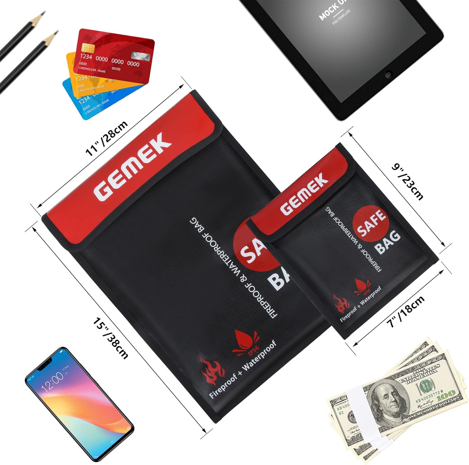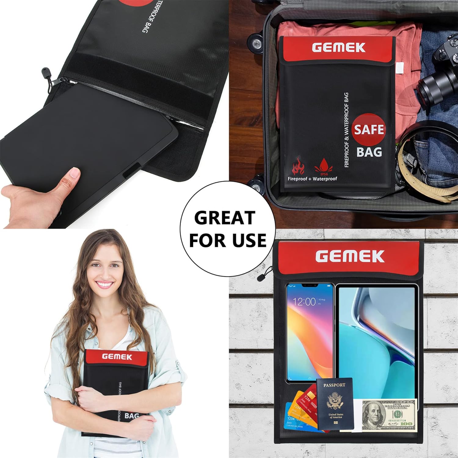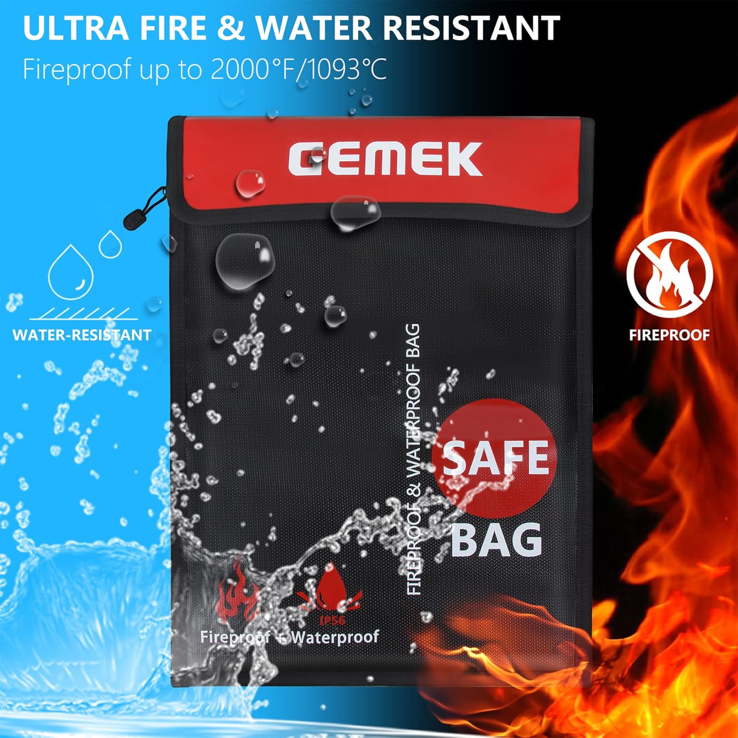 - Additional Protection Always Great Idea: GEMEK fireproof document bag offers you important documents, cash, passport and other valuables an additional protection in the event of a fire, bringing you a peace of mind.