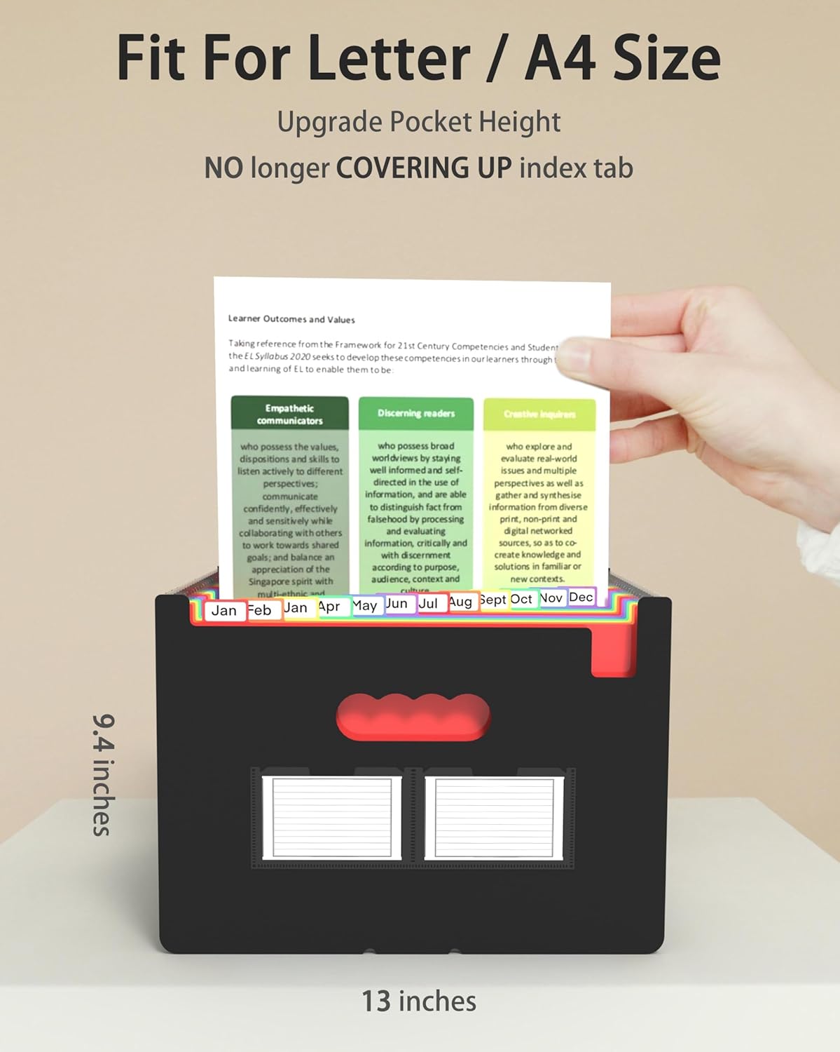 - 📂【EXPANDABLE & HIGH CAPACITY】-The file organizer keeps each slot's papers separated and organized in a good manner. 24 pockets expandable file folder. Product Size: Length: 13” High: 9.4'', width:1.96"-27". Expandable property gives it a possibility to hold approximately 3000 A4 sheets.
