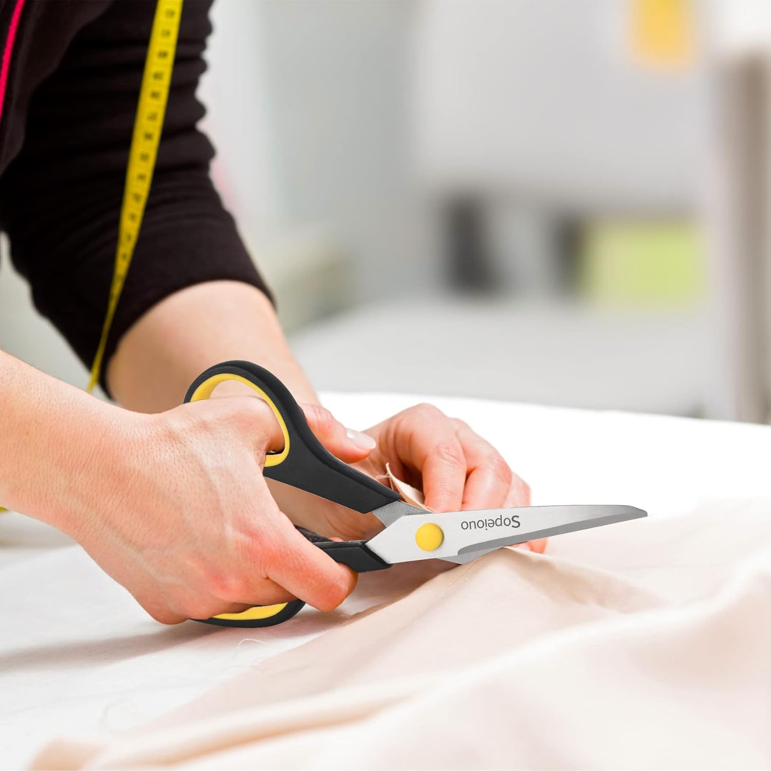 - Comfortable and Safety Scissors --Excellent ABS handle wrapped with semi-soft rubber at inner circle, can be used left- or right-handed. Great as office scissors, school scissors, sewing scissors, sharp scissors, craft scissors, fabric scissors, household scissors, garden scissors, craft shears, left handed scissors, older kids scissors, classroom scissors, students scissors, teachers scissors, scissors bulk