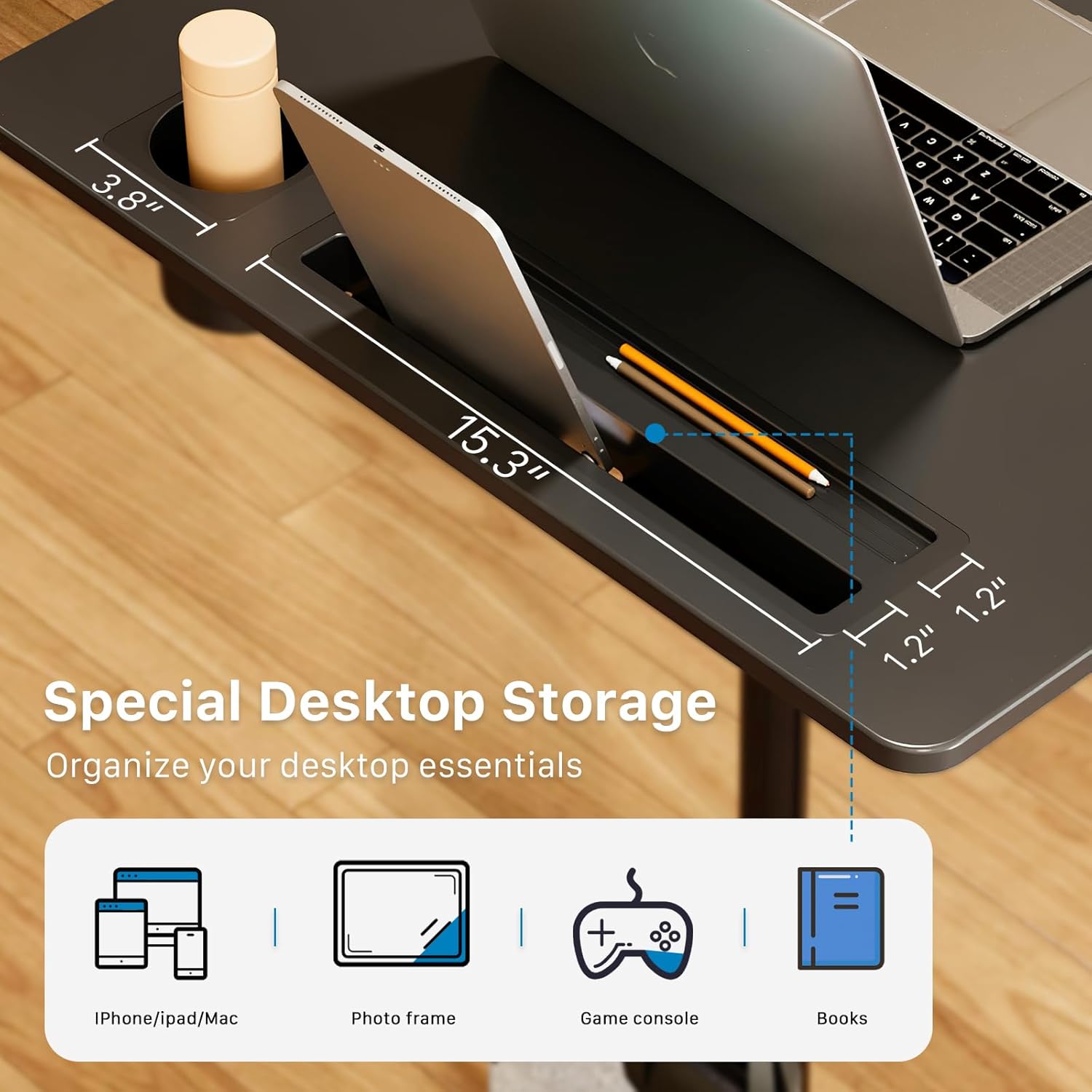 - Height Adjustable Mobile Desk: Just press the handle, the portable desk can be easily adjusted from 30.7" to 44.2", help you find the ideal position. Notes: The base's height is 4.3". If you want to use near the couch, please check the height