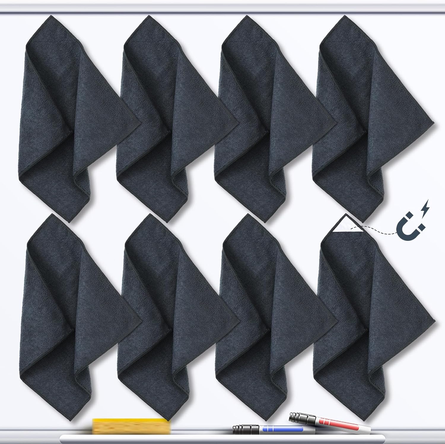 Gerrii 8 Pcs Magnetic Cleaning Cloth Dry Erasers for White Boards Compatible with Most Whiteboards Dry Erase Reusable Microfiber Cloth Eraser 12 x 12 Inch(Dark Gray)