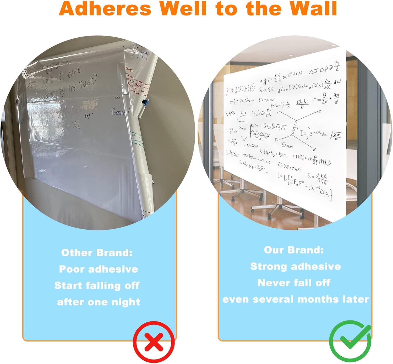 - Easy to Install: Simply cut, peel and stick to your surface. Before installation, please clean the wall surface with a clean towel and make sure the surface is dry. After sticking the white board paper, please wipe it vigorously with a dry towel competely, which will help it adhere better. It is recommended that two or three people to complete installation work for a big perfect whiteboard.