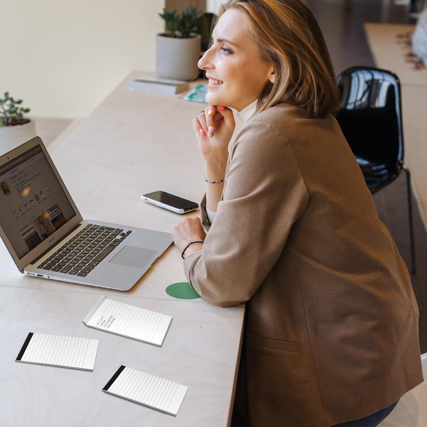 - EXCELLENT MATERIAL: Our writing pads are made of premium 80gsm thick paper for smooth writing without ink bleed. Each notepad has a thick cardboard backing to make your writing easier and more comfortable. Narrow ruled paper provides you with neat and orderly lines to keep your records organized and legible.