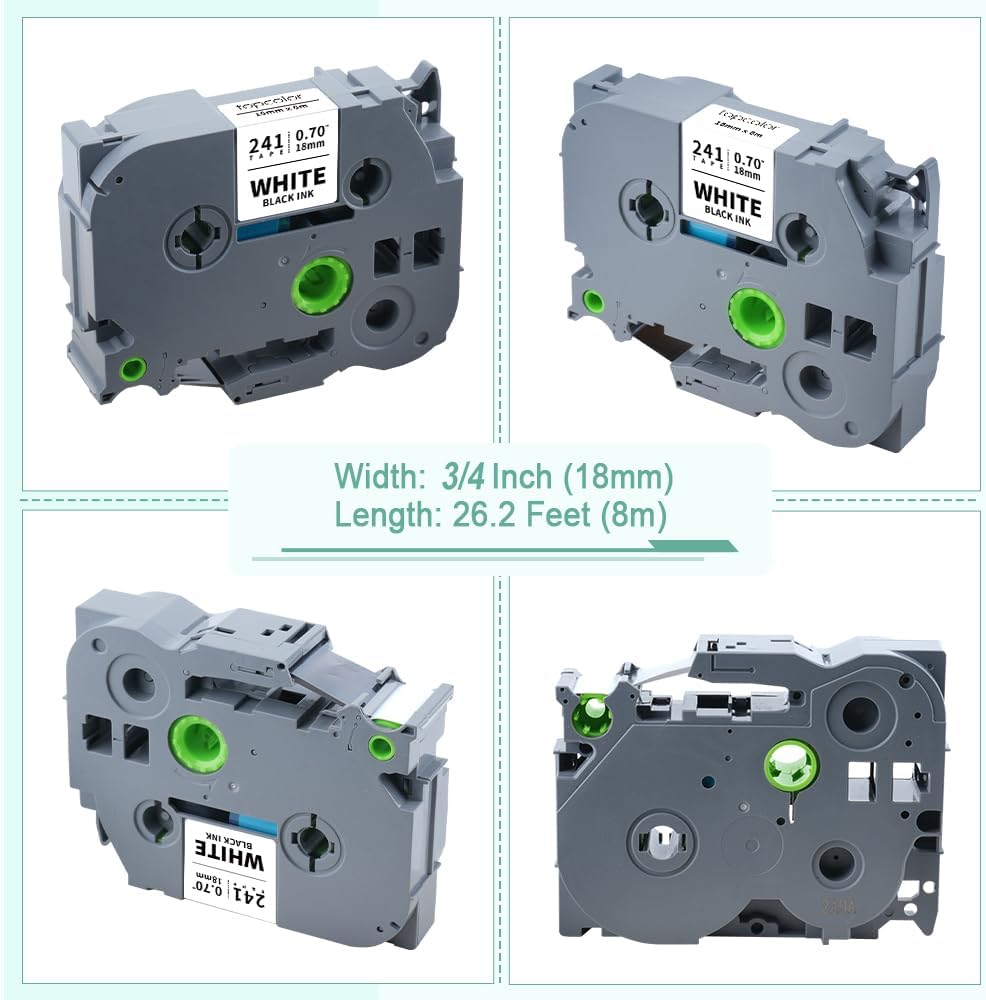 - Package Content: 6 Pack 18mm 0.7" laminated tape compatible with Brother ptouch tape 18mm 0.7 tz-141 tz-241 tz-441 tz-541 tz-641 tz-741 tze tz tape 18mm 3/4" label maker refills; Size: 0.7 inch x 26.24 feet ( 18mm x 8m ). Color: Black on Clear/White/Red/Blue/Yellow/Green