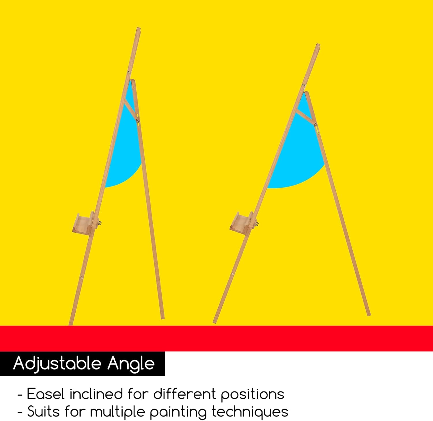 - ADJUSTABLE FUNCTIONS: Loosen the wingnuts and adjust the rear leg, and the art easel can be tilted for different angles to suit most positions you want. The large tray can be adjusted up and down to meet your different painting habbits or display needs. When not in use, the easel can be easily folded flat to fit in narrow spaces.