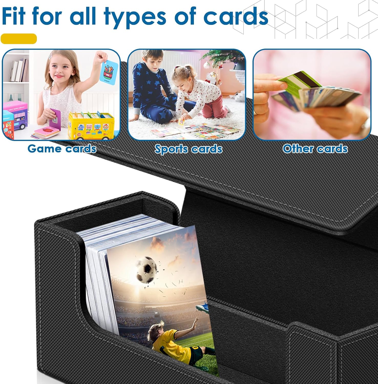 - Holds 600+ Sleeved Cards: the size of our deck card case is 11.45x4.2x3.6 inches, it's large enough to store 600+ standard size trading game cards easily. Do NOT fit top loaders sleeves.