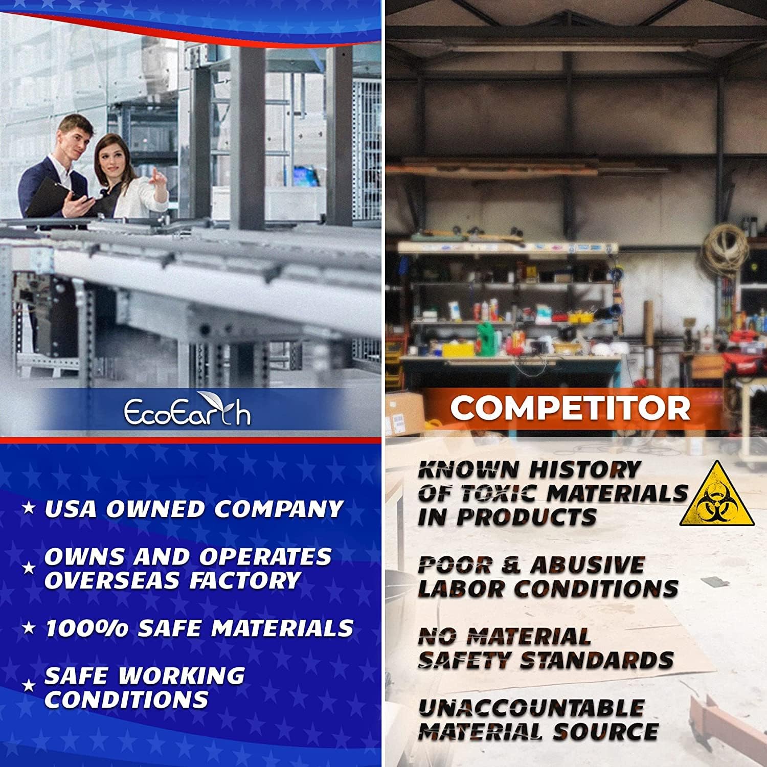 - USA COMPANY - We are a US-owned and operated company with overseas factories, committed to safety and responsible practices; Our unwavering commitment to excellence drives our mission to provide products of the highest quality