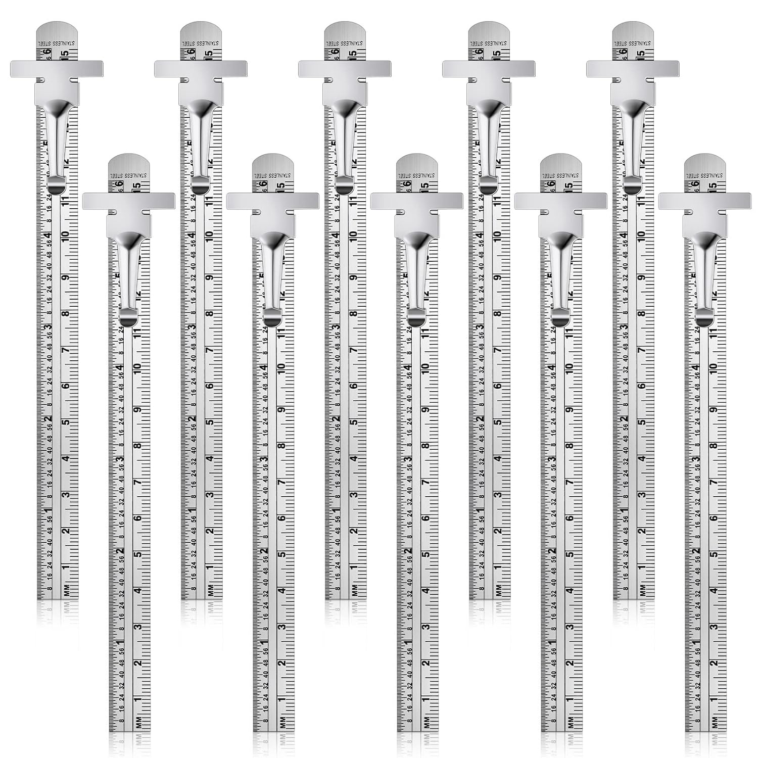 6 Inch 15 cm Pocket Ruler Flexible Precision Stainless Steel Ruler with Detachable Clips Stainless Steel Pocket Clip Scale Gauge Metric British System(10 Pieces)