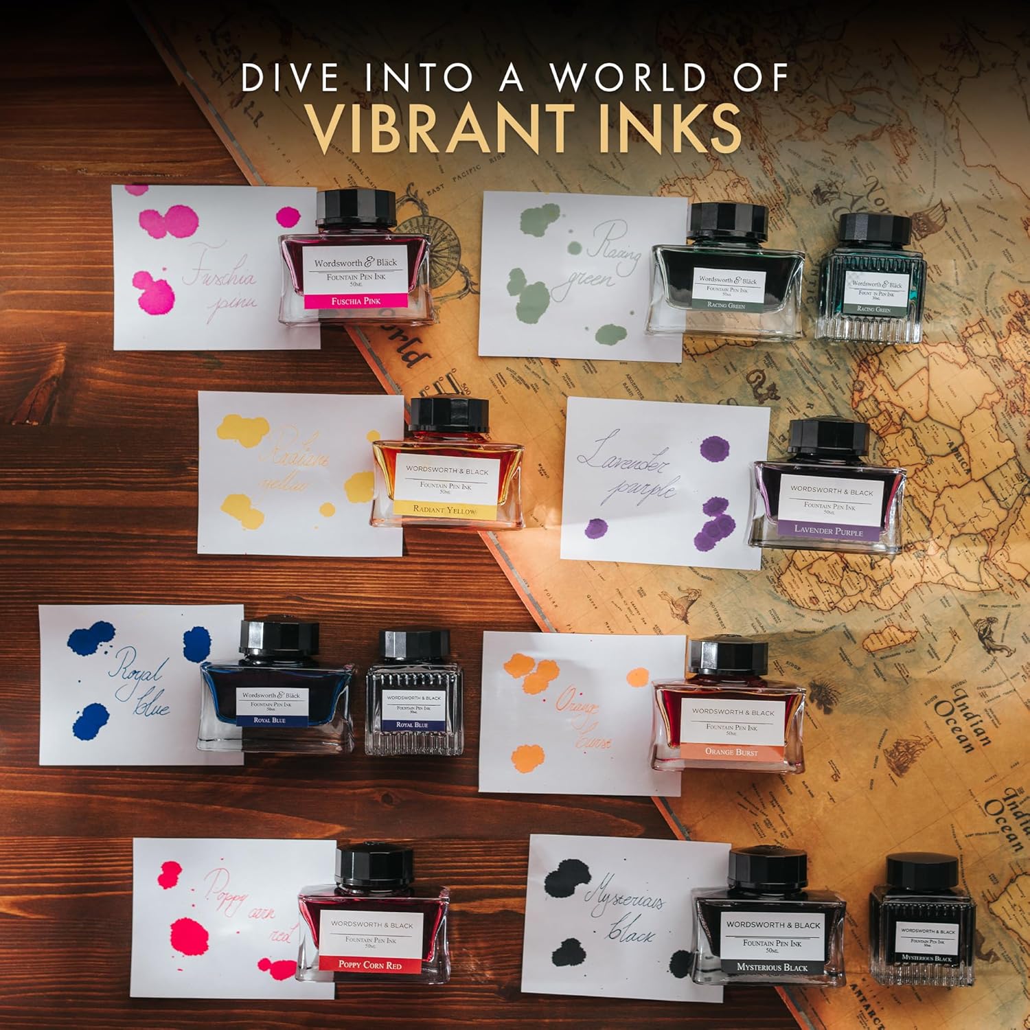Wordsworth and Black Fountain Pen Ink Bottle (30 ml) Premium Luxury Edition, [Mysterious Black] Fountain Pens Bottled Ink; Classic Designed Bottle Smooth Flow 30 ml