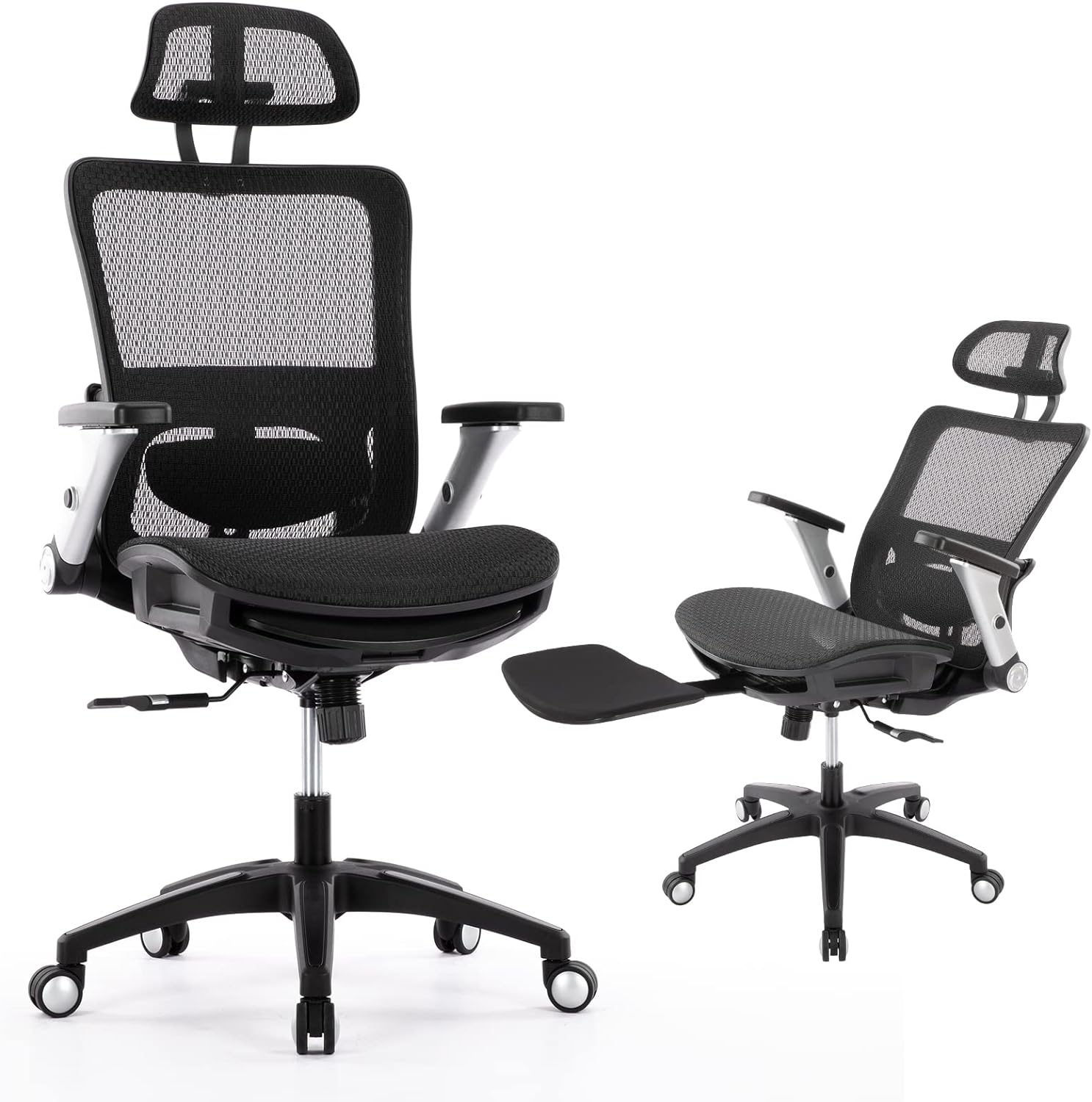 COLAMY Ergonomic Mesh Office Chair with Footrest, High Back Computer Executive Desk Chair with Headrest and 4D Flip-up Armrests, Adjustable Tilt Lock and Lumbar Support-Black