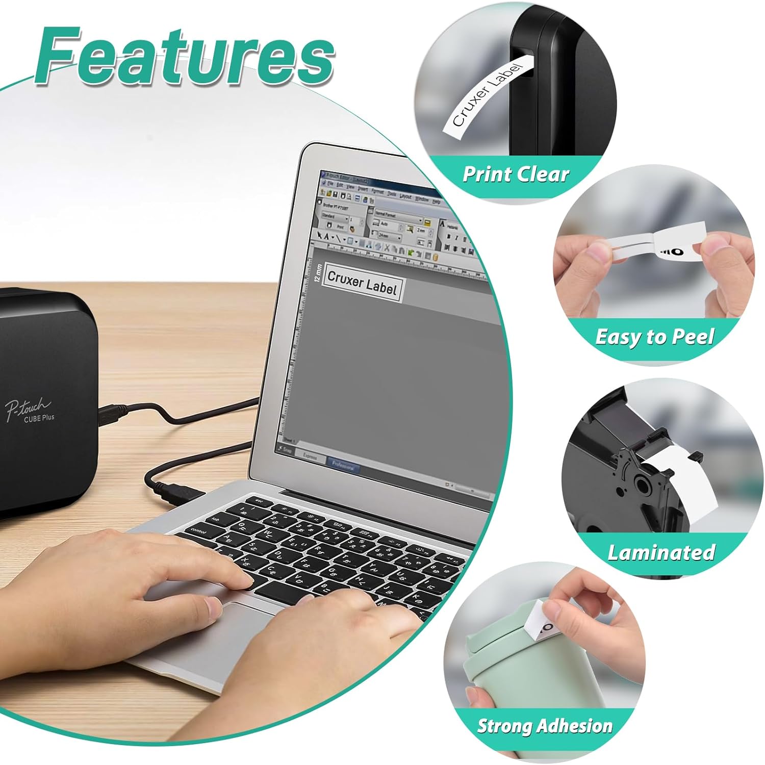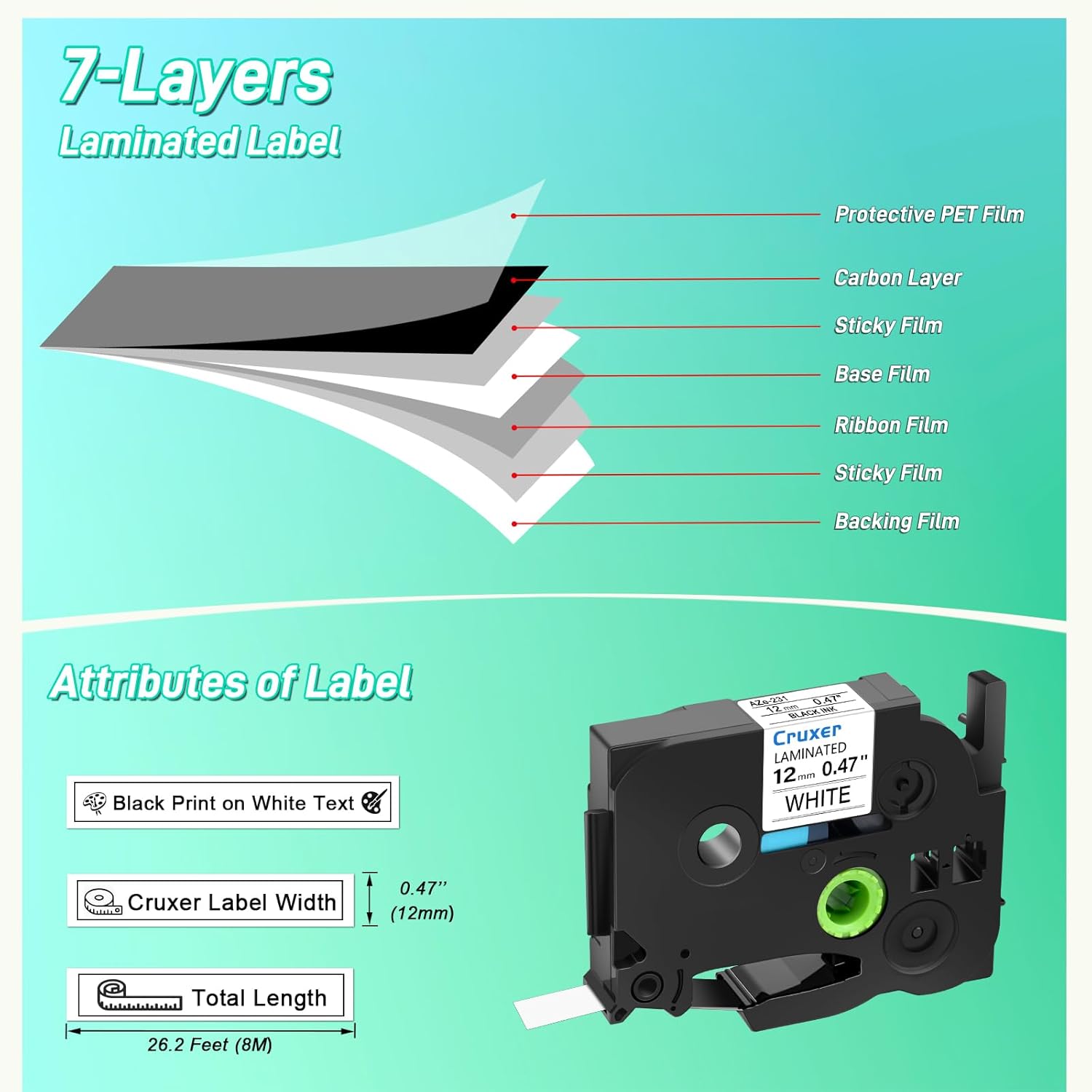 - 👍Fabulous Materials ➤ Cruxer Laminated Tapes have Strong adhesion, Waterproof & Chemical Resistance, Abrasion Resistance, Temperature Resistance, Fade Resistance. The label has a unique design split back, making it easy to peel and apply. No sticky residue when the labels are removed.