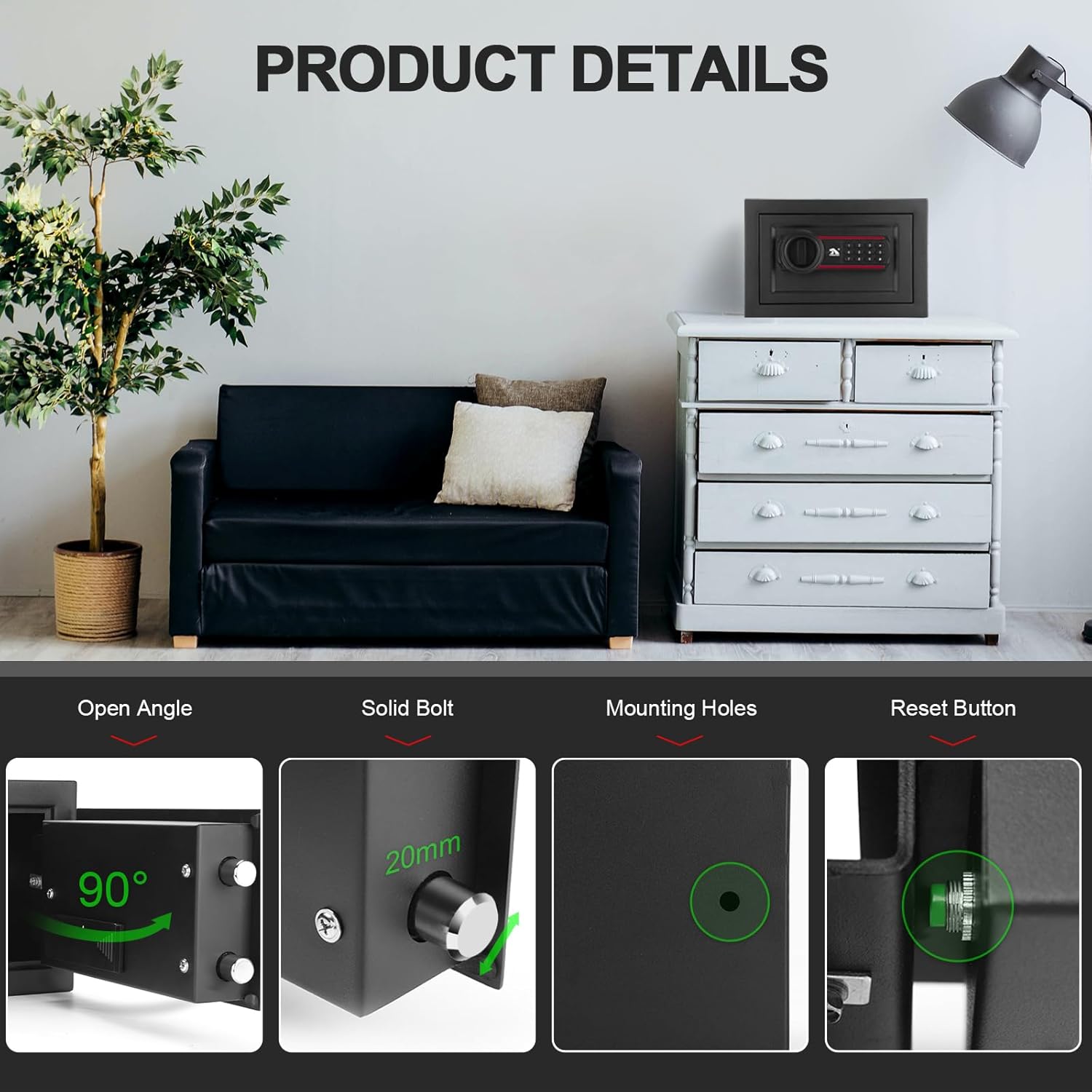 TIGERKING Digital Keypad Safe Box, Combination Lock Safes, 0.5 Cubic Feet Small Safe and Lock Box with Digital Keypad for Home, Office, Cash, Jewelry, Documents