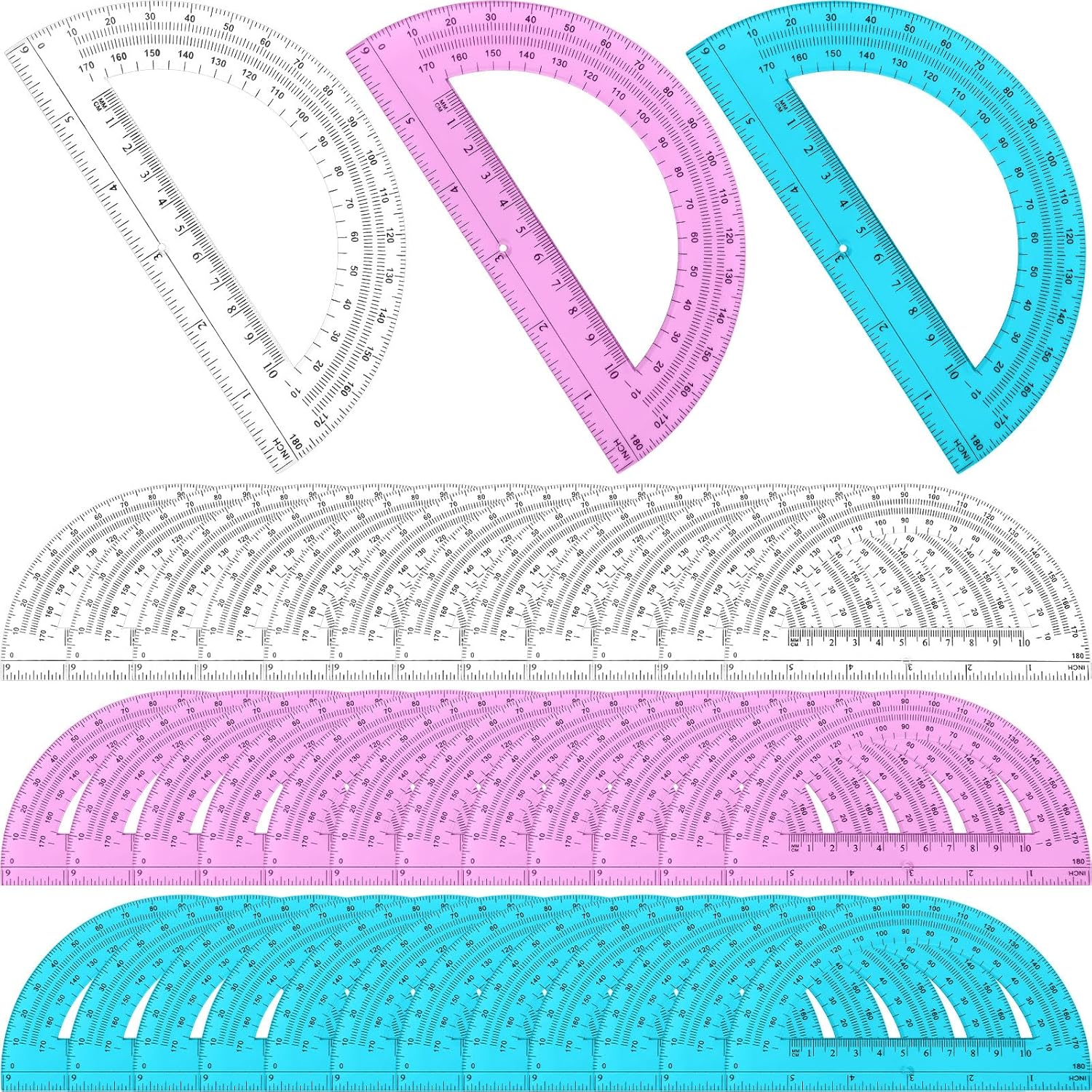 - Multiple colors: You will receive 36 protractors, 12 each in pink, blue and clear; You can choose your favorite protractor for measuring or drawing; Various colors will attract children's interest