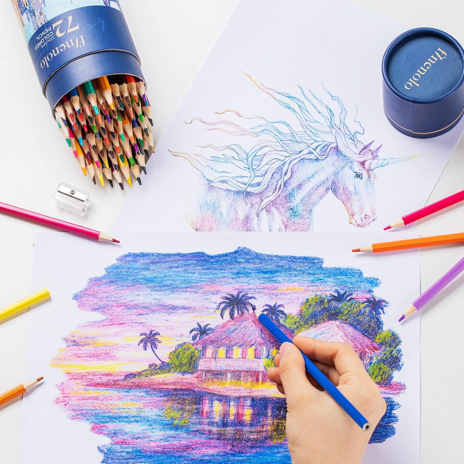 - What You Get -- 72 colored pencils + 1 eco-friendly pencil tube + sharpener. Convenient to storing and easy to find the color you are looking for. Built-in sharpener allows you to sharpen color pencils anytime.
