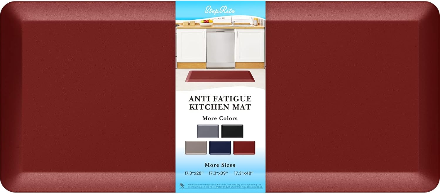 StepRite 4/5 Inch Thick Kitchen Mat Anti Fatigue Mat Kitchen Rugs Kitchen Decor Non-Slip, Stain Resistant, Waterproof Kitchen Mats Desk Mat for Kitchen, Office, Workshop, Red, 17'' x 39''