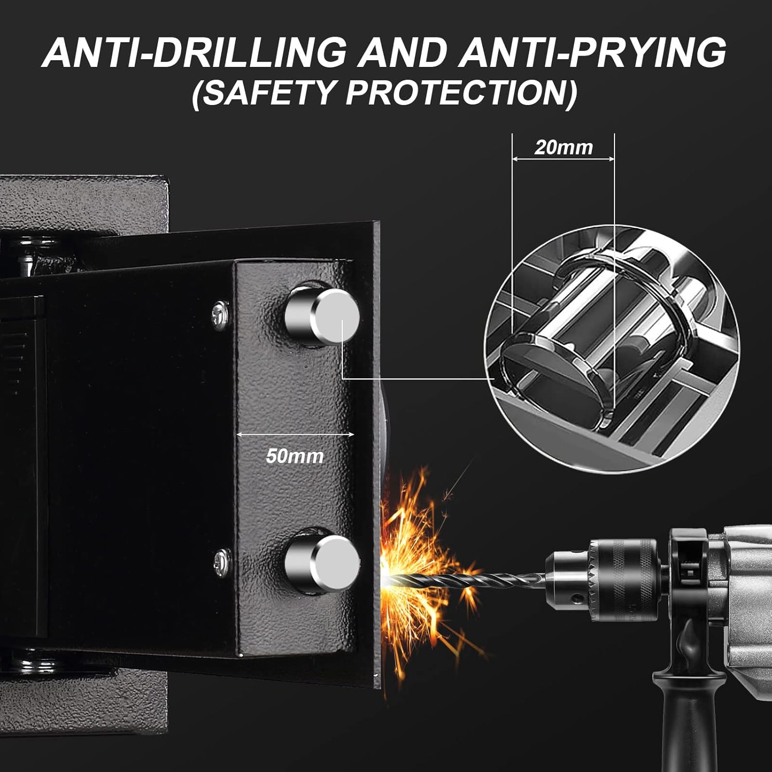 - ✅STRONGER MATERIAL: TENAMIC mini safe box is made of the better solid steel, the surface has anti-corrosion and anti-wear powder coating. This security safe has a pry-resistant steel door and concealed pry-resistant hinges to offer you complete peace of mind. It ensures that your cabinet safe is stronger and more durable. If necessary, you can fix it on the wall or the ground.