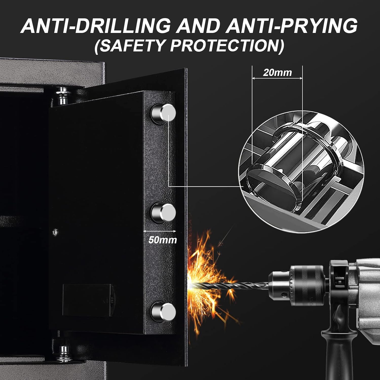 - ✅STRONGER MATERIAL: TENAMIC safe box is made of the better solid steel, the surface has anti-corrosion and anti-wear powder coating. This security safe has a pry-resistant steel door and concealed pry-resistant hinges to offer you complete peace of mind. It ensures that your cabinet safe is stronger and more durable. If necessary, you can fix it on the wall or the ground.