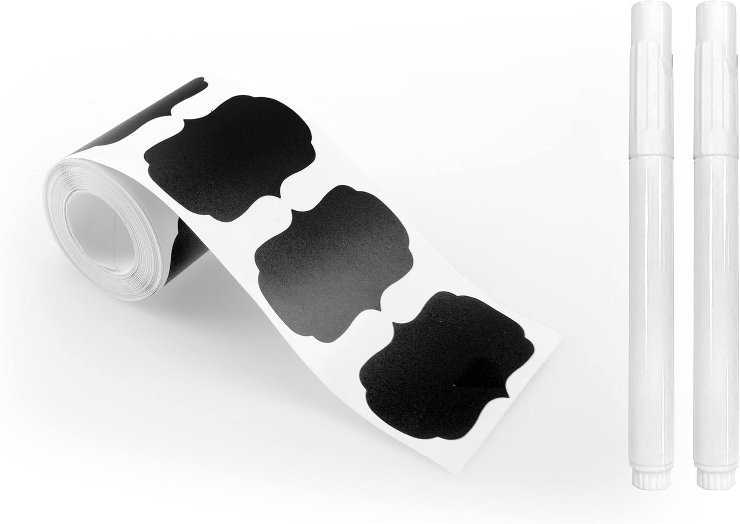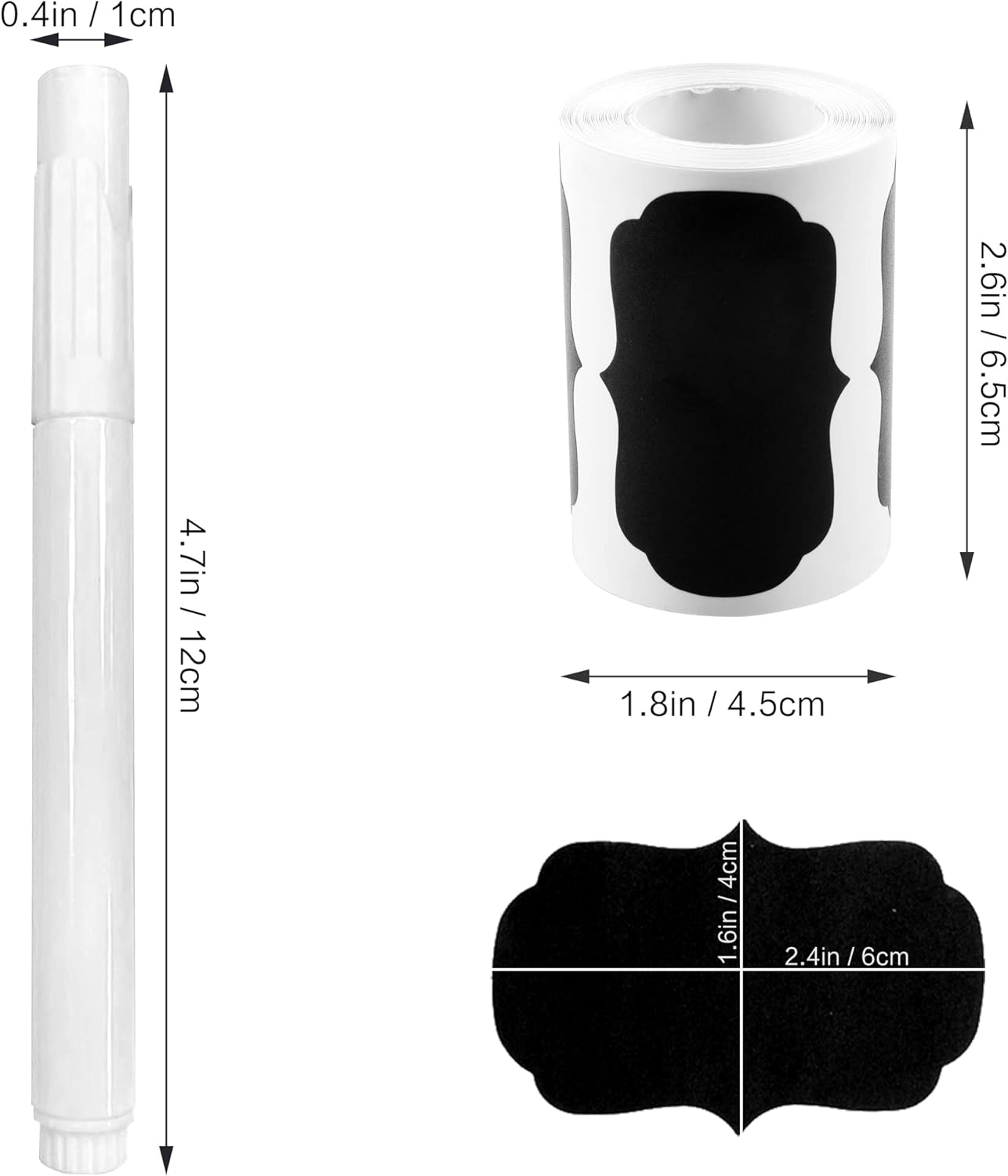 - 📣️ Premium chalkboard stickers: Eraserable chalkboard stickers labels with the liquid white marker are reusable multiple times, chalk markers are long-lasting and quick drying, simply wipe clean with a wet wipe and rewrite new content before sticking to the container or jar.